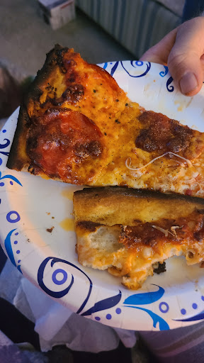 Especially the sauce. The sauce has no flavor and no depth. It's basic. 🤷♀️ It tastes exactly like I took out some cans of Hunt's whole tomatoes, minced them up, and that's it. No seasoning, no nothing! And it was the same sauce we received for dipping the garlic knots into. The cheese was a bit extra (i.e., more than expected or needed), but also nothing to write home about.