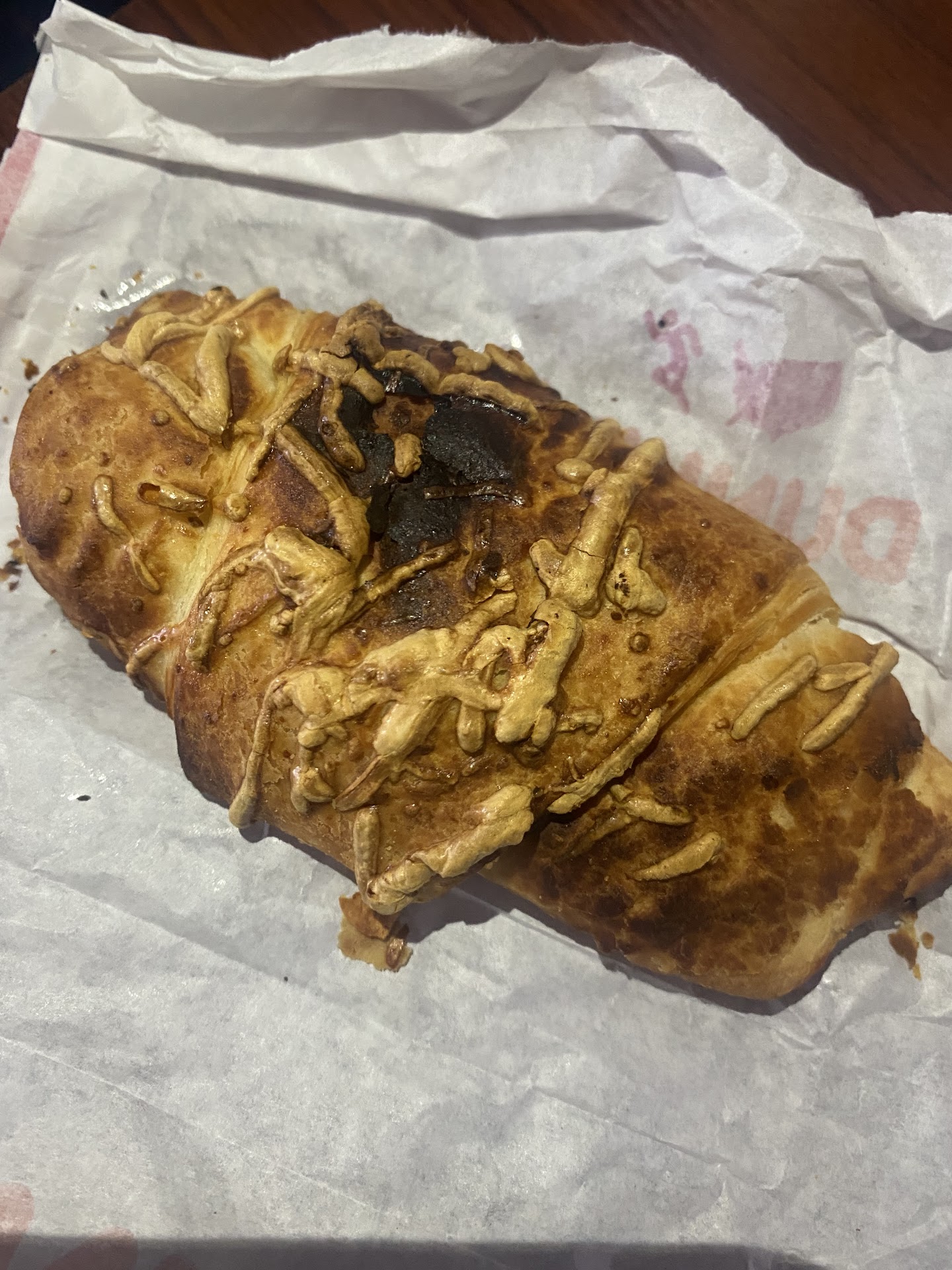 Once I pulled off and headed home I went to eat my glazed donut. It was dry as the Sierra desert. I put the donut down, thinking my croissant would make up for the donut travesty I experienced when trying the glazed donut. To my horror, the croissant was worse!!!! There was cheeses oozing out from all sides and the croissant was almost black it was so burnt!!!
