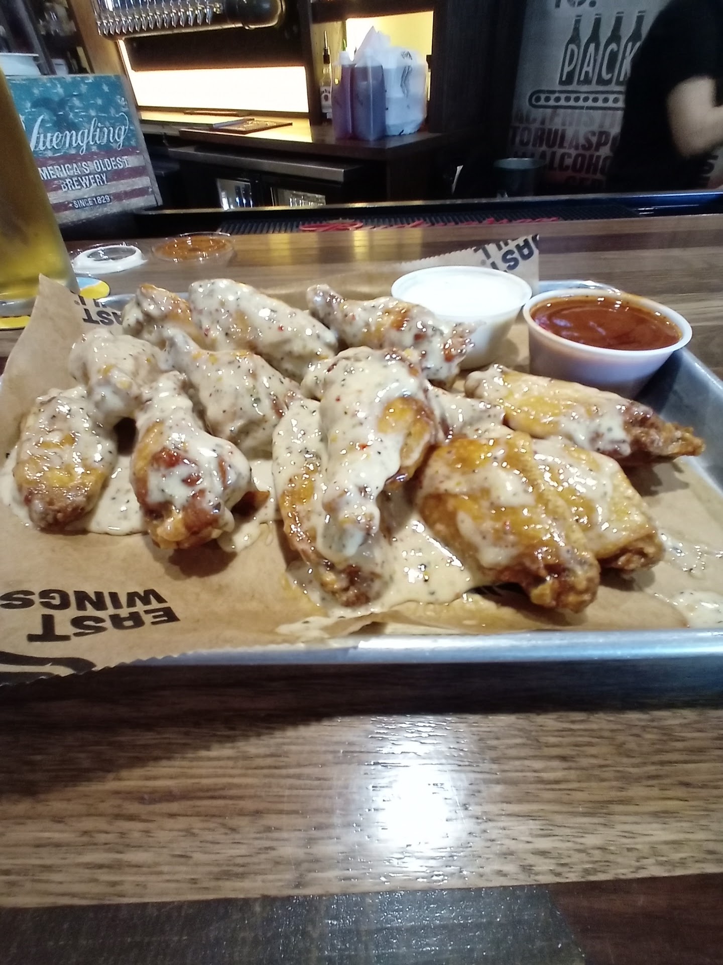 The atmosphere was not friendly nor greeted us, just sat us down. Me and my friend are both waitresses with a lot of experience and the waitress was very short with us. Me and my friend shared a 10 piece, 5 buffalo and 5 lemon pepper. The buffalo wings were rubbery to us, we just simply didn’t like them and asked nicely to exchange them for more lemon pepper since we preferred them. Waitress had a attitude when we asked to exchange but then she says she will only give us 4 lemon wings. We only took one bite out of the buffalo wings. She came back in less than 2 minutes with plain wings and lemon pepper seasoning on the side. Remind you there is only at least 4 tables in the restaurant. At that point we were over it and got boxes. My drink spilt on me so I went to the bathroom to dry off while my friend took care of the bill. Once I get out the bathroom I’m planning on leaving cash on the table for her tip so my friend left 0.00 tip on card. Once we walk up to the table the waitress tells us how rude we are for not leaving a tip after she “fixed” our wings and just says nasty things. We simply walked out because she had a stank attitude the whole time then jumped to conclusions once she saw 0.00 tip on card. As a waitress if moneys not on the card it’s on the table. As a waitress if somebody complains and they barley ate the food they didn’t like I’m going to try my best to get what they want ESPECIALLY if the restaurant is slow. As a waitress if I don’t receive a tip i’m not going to complain because i know God got me and also you don’t know everybody’s situation. Like I said she would’ve gotten the tip if she didn’t jump to conclusions about me not leaving her a tip JUST BECAUSE it wasn’t on card. Horrible behavior as a waitress. This isn’t the first time I have heard about the attitudes that some of the waitresses have at this restaurant. We will not be...