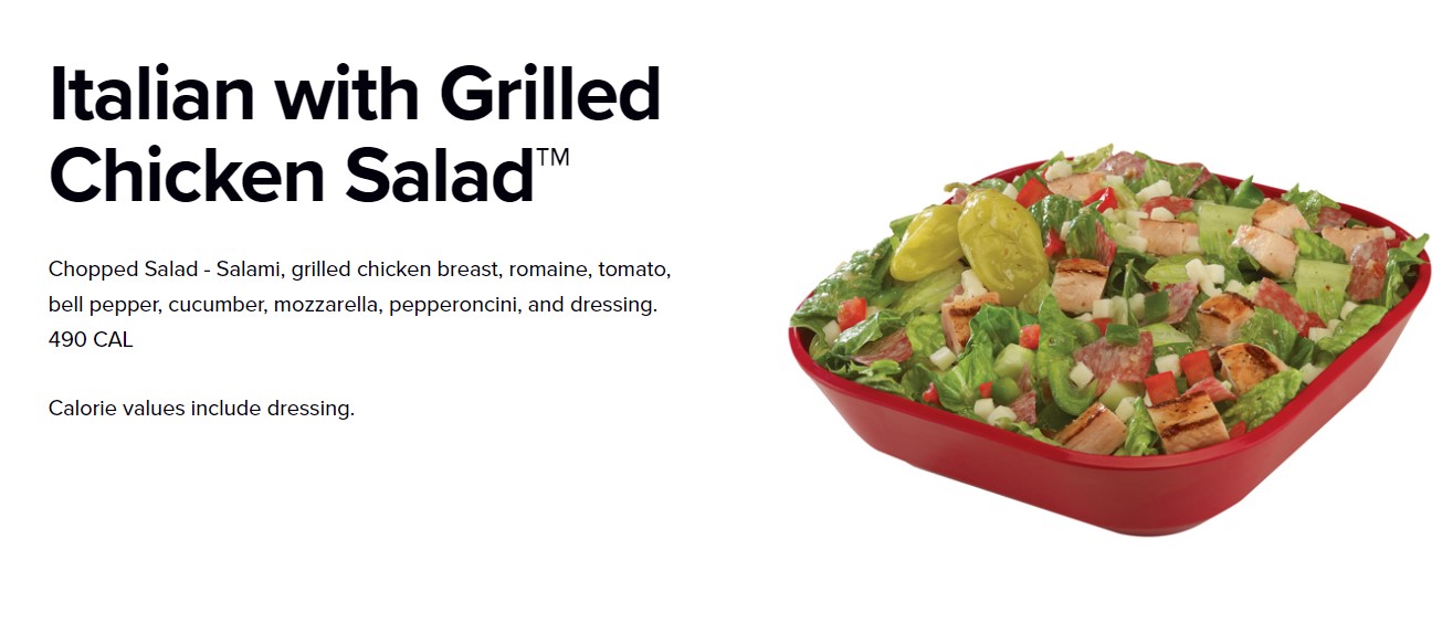 My company ordered for lunch at this location today. I was in the mood for a salad. So I ordered their "Italian with Grilled Chicken Salad". Based on the picture I was sure this would be a robust, filling salad with a healthy amount of veggies in it. Let me just say I was shocked when I saw the salad. To say it was paltry is being nice. The container looks like what you'd get a standard bowl of soup in. 4 very thin slices of chicken, no salami or pepperoncinis to speak of. About a tablespoon of lettuce. I paid for extra bacon and asked for extra tomatoes: It looked like a sprinkling of bacon and like 6 pieces of diced tomatoes. Now, if this salad was around 5 or 6 dollars, I probably wouldn't have thought twice about it. This disappointment set me back almost 13 dollars. Just so these establishment knows: Lettuce is cheap. Tomatoes are cheap. Cucumbers are cheap. If you're looking to cut corners...salads aren't it. You can get a salad twice as big, with a ton more toppings on it, from the convenience store down the road. The owner should be ashamed anyone is putting food like this out the door to his restaurant. Pictures below are as advertised, and what I received. Single use pepper...