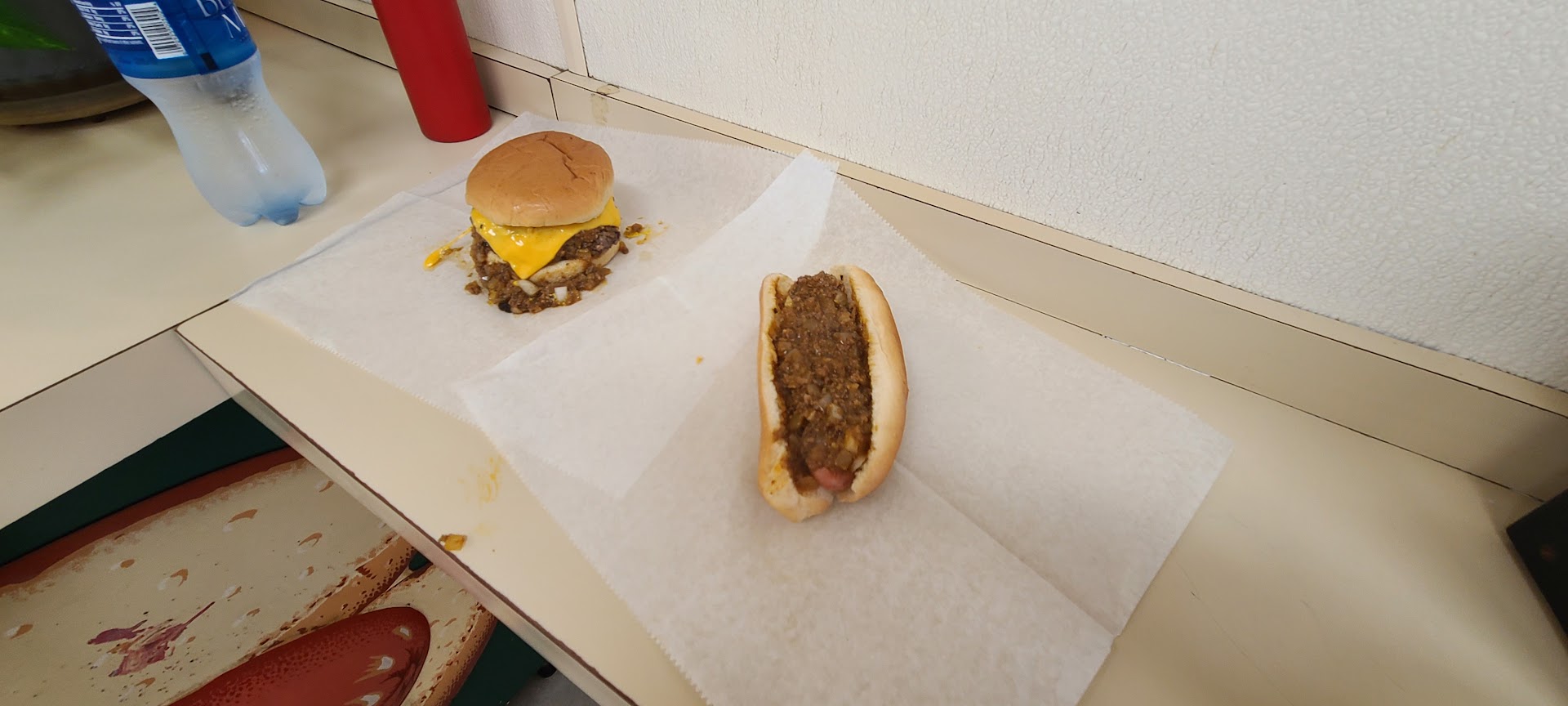 Since it was my first time I ordered a cheeseburger and hotdog and told them to make it however way is their speciality. She told me that was "all the way", which is onion, mustard and chili.
