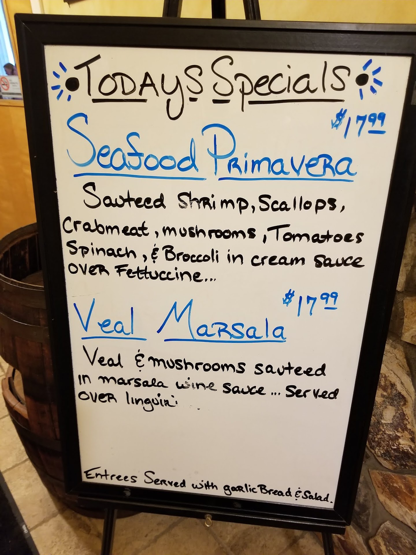 Read moreService & food was very poor. We ordered 2 Miller Lites & 2 waters, server went to the kitchen then came back to ask us what drinks we wanted again because she didn't write it down. We both ordered the Veal Marsala special & some artichoke dip for an an app. I asked the server to add green olives to my Caesar side salad & she said no problem. I get the Caesar salad & it has No green olives in it so I ask for them again. The app. comes out & it is spinach dip in cheese sauce. I said I ordered the artichoke dip & she said "no you ordered the spinach dip", which I did not. The Veal Marsala is served & to my surprise it has the green olives in it. Server checks on us & asks how everything is, I said I asked for green olives in my Caesar salad not my Veal, she calls me a liar again & says that I told her to add them to my Veal, LOL. The Veal was very thick like a chicken cutlet, the spaghetti was over cooked/mushy, the Marsala sauce was soo thin that it made all the breading fall of the Veal & had very little flavor. Over all extremely poor service & terribly...
