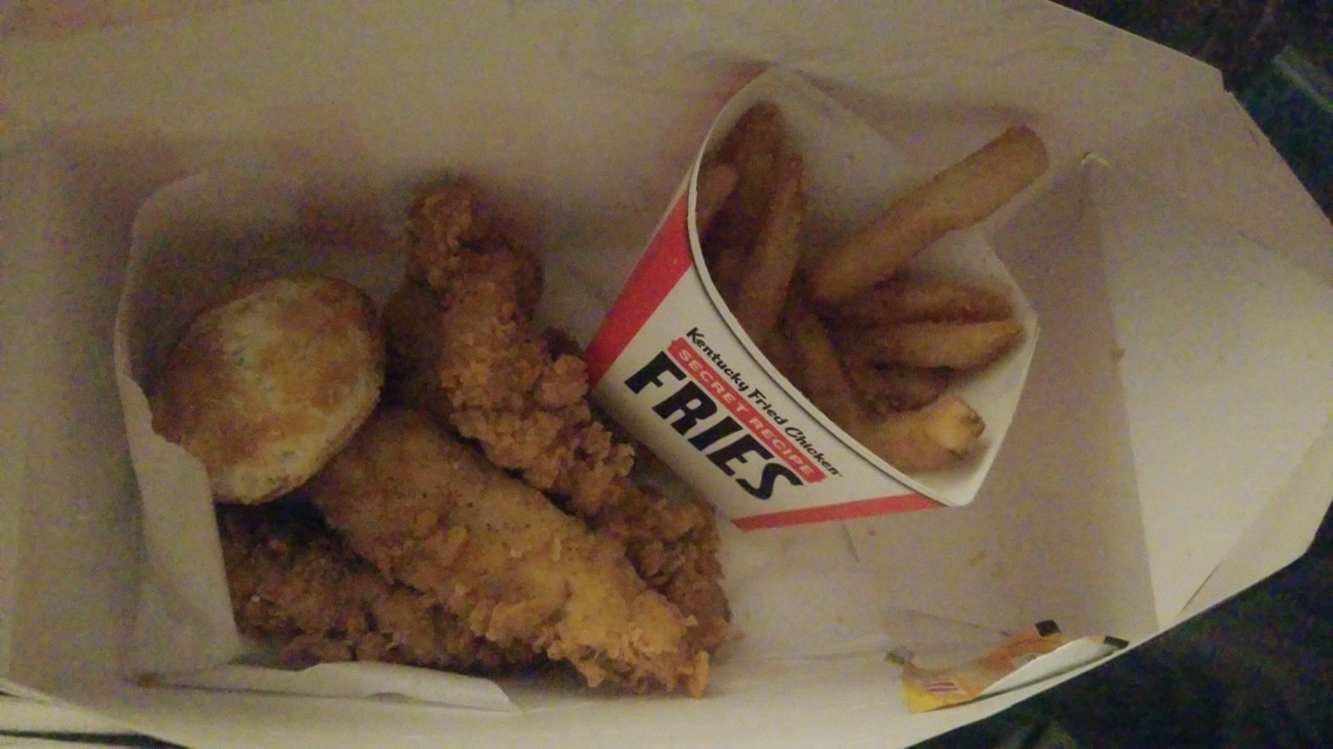Read moreAfter along days work I decided to get my family dinner. I ordered two spicy chicken meals w fries w tropical passion lemonade . Also two ten piece apple popper pies and a 12 count nugget meal w fries honey mustard and kfc sauce w a tropical passion lemonade. My order total was 43 dollars and some change . I was pulled for 15 mins . The food I recieved was hot I’ll give them credit. But my nuggets weren’t in the bag after driving home . So what am I to eat. I drove back got to the speaker and told them what I was missing. The cashier told me the manger said she put the in the bottom of the bag . I told them I’ll put to the window so she can check I have absolutely no reason to lie about nuggets for 8 dollars when I spent 43. Once approaching the window the manger refused to check the bag . Told me pretty much as a customer I was a liar . The cashier laughing like it’s funny . I told her I should ask for a refund . Since I’m accused of lying about nuggets .