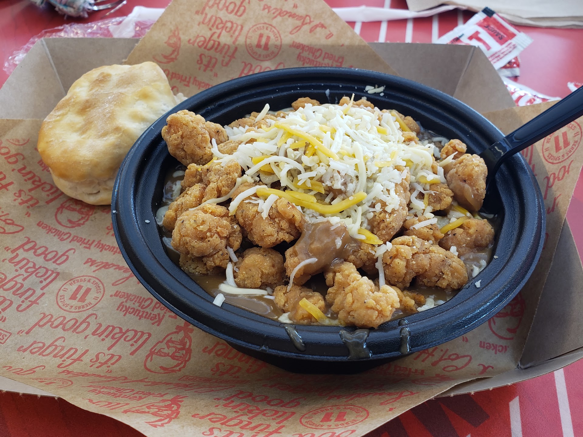 Not bad for a quick chicken trip. Lot of things have changed since the old colonel left the building. While they say they're still a lot like the old way in many ways they're not. They used to hand do a lot of stuff right there at the restaurants. However corporate decided to make sure certain items like tater wedges.etc are done in a big processing center. They are still good but not as good as the fresh ones that used to do at the restaurant. To be fair most of the corporate chicken places are leaving little to chance and are doing things in a process manner. The $5 fill ups are quite good. They also include beverage. This is definitely a good money saver for family on the go. However if you go off the fill ups in order something off the menu it can be costly. Ordering a chicken strip combo in a five count with two sides can run you ten bucks when you order a drink. That is pretty high. For just chicken strips. However I will say they're probably the tastiest chicken strips in the business. They are lightly breaded like their chicken and are very tender and have all white meat. Overall this is a cool place to go for a quick chicken fix. I have always felt like their sides or a little small . But that is been a continuous problem with KFC . I feel like they can increase the size of their portions for sides definitely. This particular location has always had good management. The nice young man that runs this place during the daytime has been here I know at least 5 years. It makes a difference the place seems clean and consistent. I would up with stars but the reason for only three is the costliest. But as far as quality they do have that. Not bad overall but the colonel has...