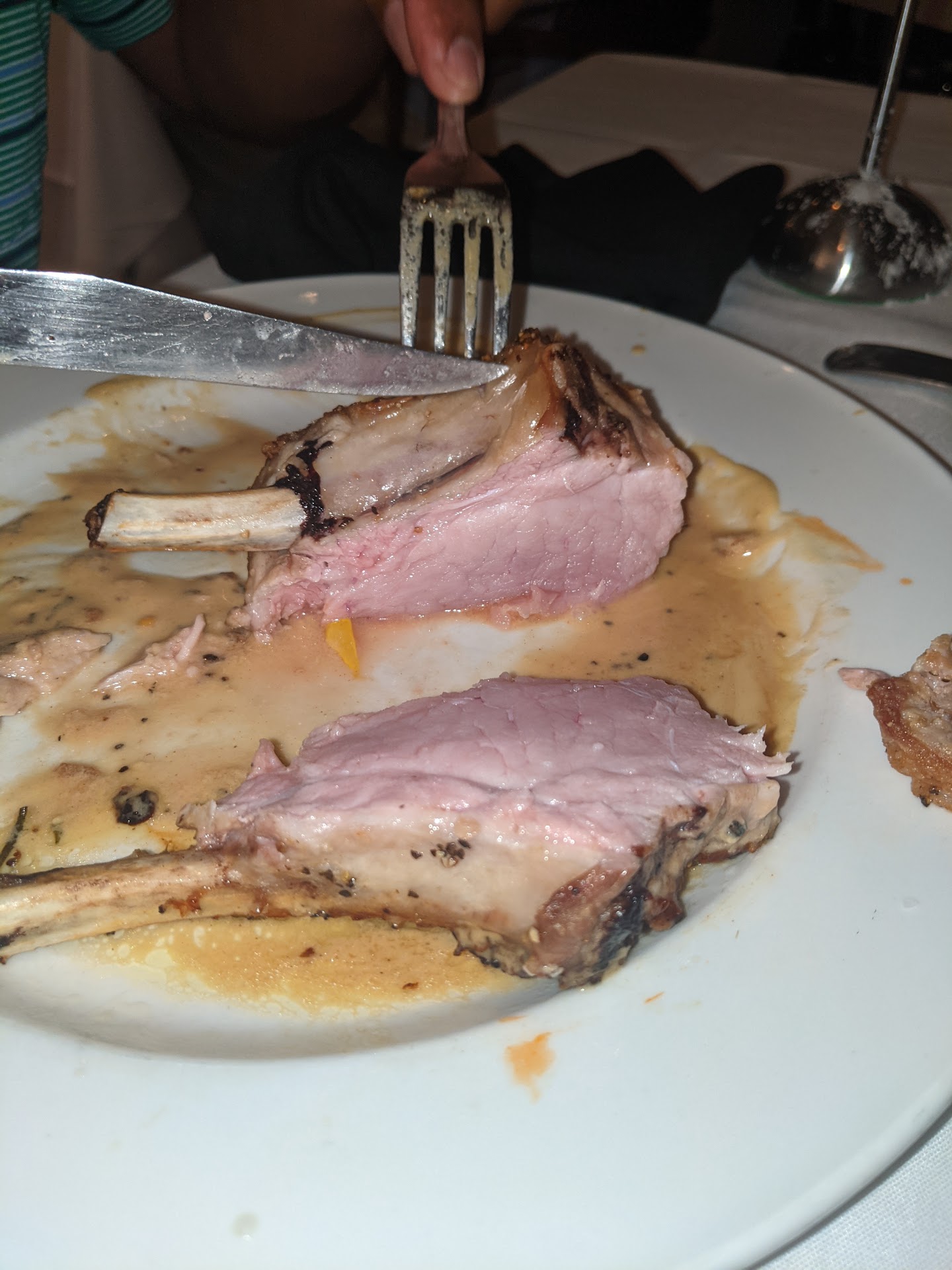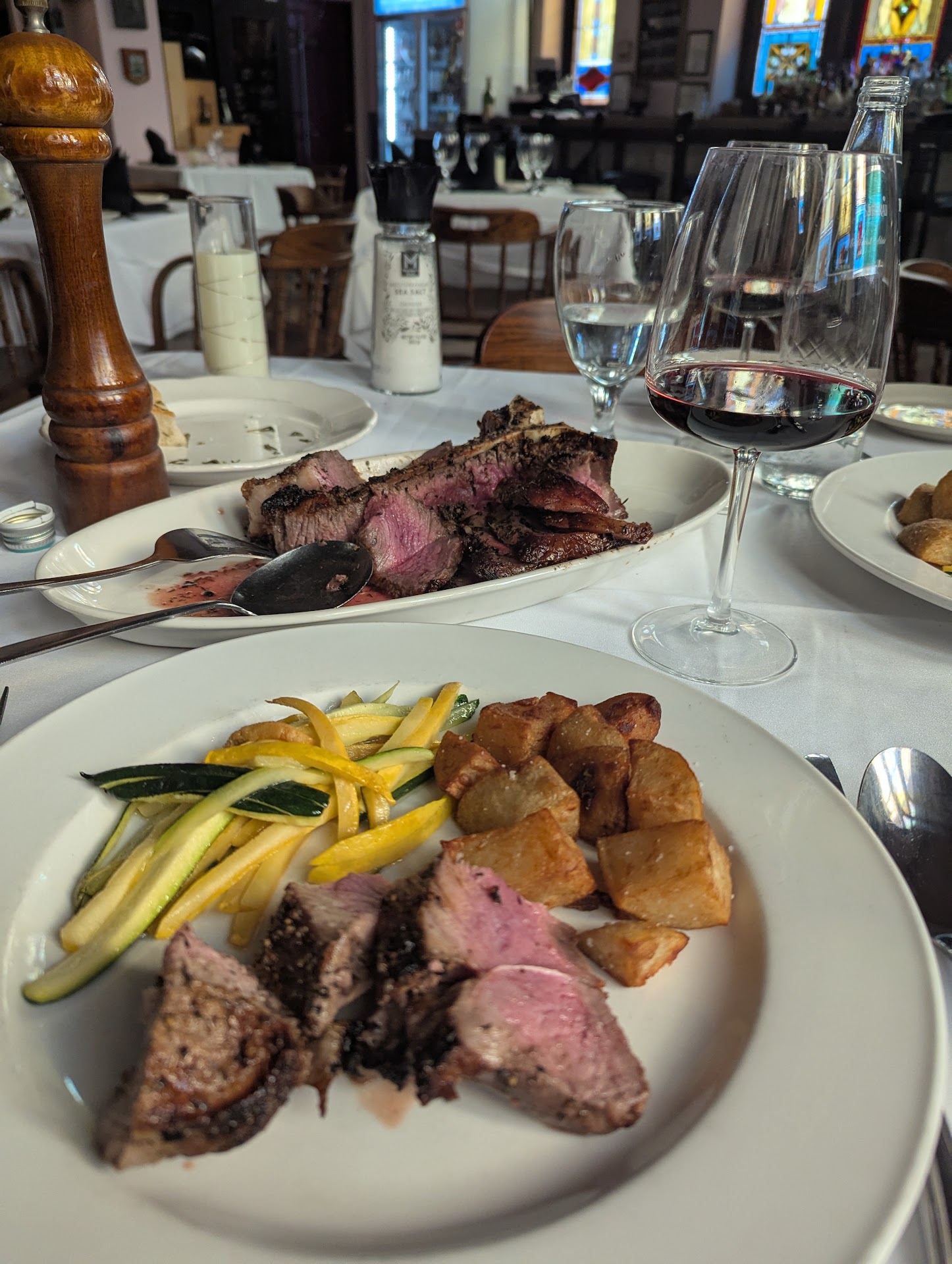 I ordered the new York strip au poivre which came out and was flambéd table side, adding to the whole experience of the night. The sides were roasted red potatoes and broccoli, which were a little on the bland side, however the steak was beyond excellent. Probably the best steak I've had in Salisbury.
