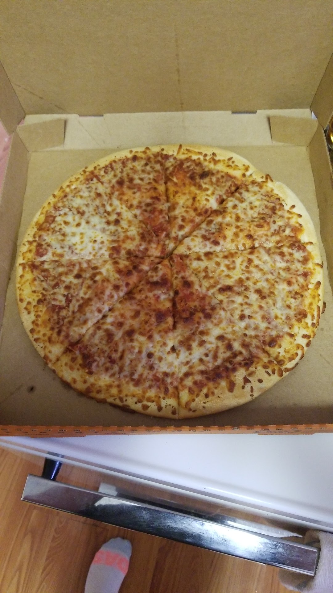 We arrived at the pickup time and waited for 45 minutes. We were going to be late so they asked if they could give us 12 pepperoni pizzas and 10 cheese, which was fine at that point because we had to leave to have the pizzas to the church for the children.