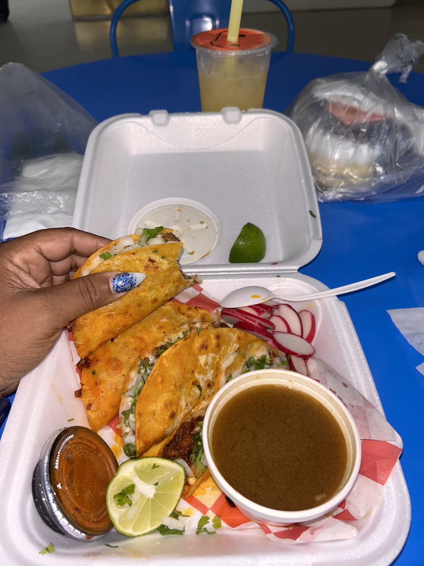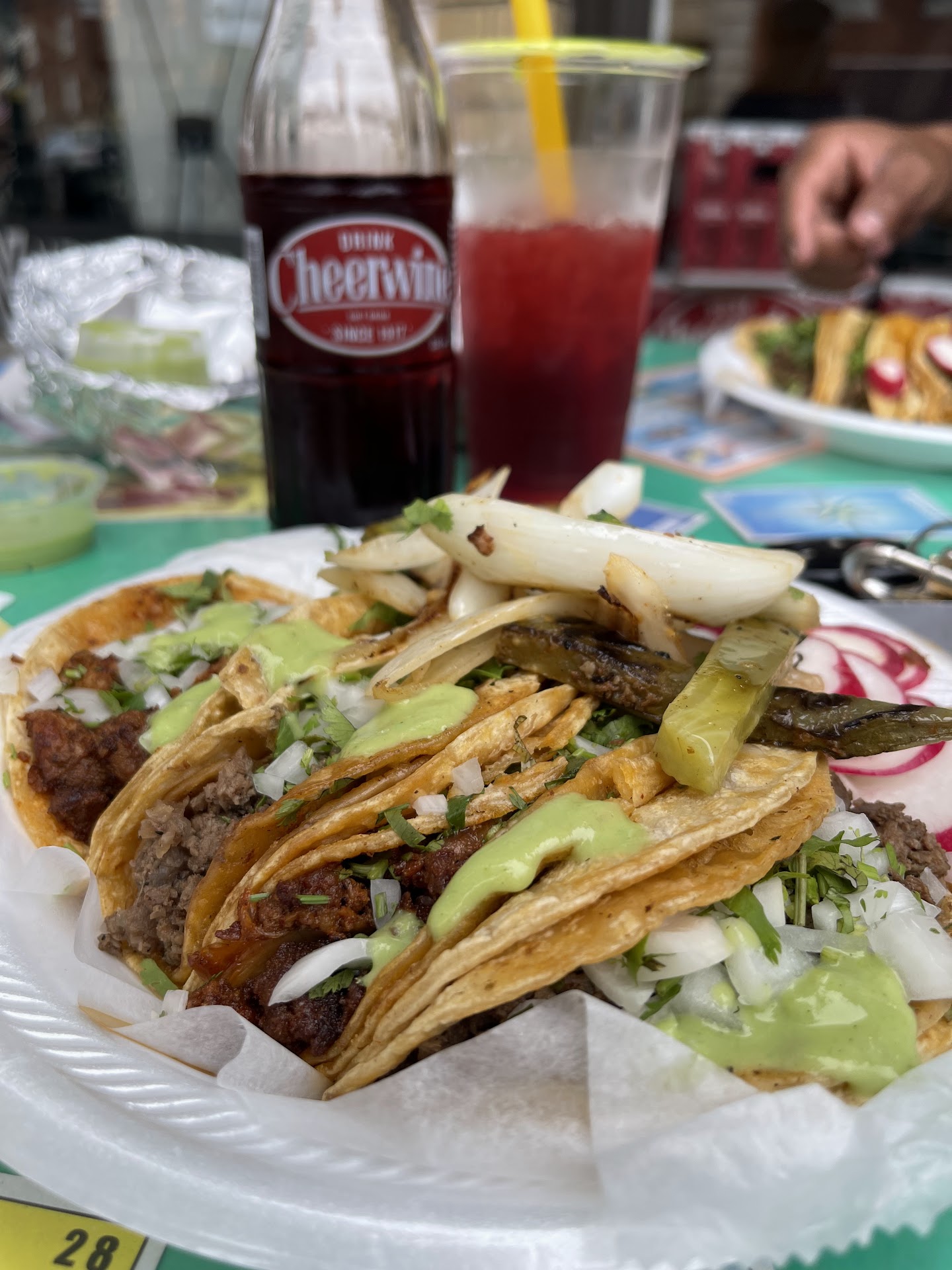 Read moreCame here today wanting some good Tacos. Saw this place so I checked it out. 4 plate.of tacos and a drink was 17 bucks. I thought reasonably priced. I ordered 2 Asada and 2 Companchango. Green ans Red salsa have good flavor a tad to salty. Spice level on the green is decent hoped for more of a kick on the red but still flavorful on the taco. Meat was fresh and diced small which is how I prefer it. Tacos on the medium size.tortilla for tacos stuffed well though. I enjoyed the side of cactus radish and onion although I'd prefer a jalapeño I understand those can raise cost. Overall 4.4. Pull back on the salt for your sauce and kick up the red sauce a notch and we are talking solid 4.7....
