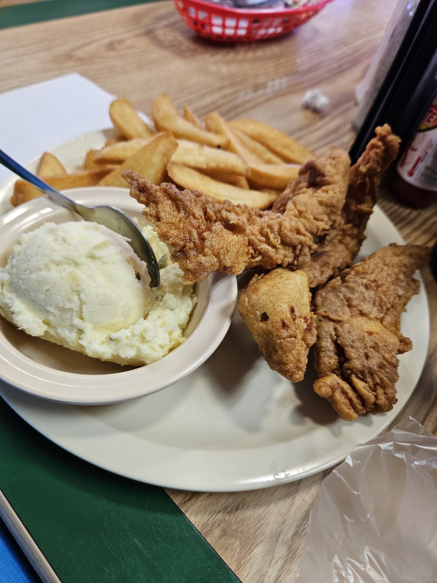 This is not a place where they pay attention to detail. The chairs make an awful racket on the floor when you have to slide them in and out. The condiment containers appear that they never get washed. They look sticky and dirty. The barbecue sauce containers have a flip-up spout designed so that the only way you can flip up the spout is to put your finger right over where the sauce comes out. It's really gross to think about how many nasty fingers have touched the tip of the dispensers. It's one of those situations where you can't help but ask, "What was the manufacturer thinking when they designed this sauce dispenser?" The menus are dirty from people's dirty hands being on them. When I was asking the waitress about some plates, she opened up a menu and she actually marked some of the food choices with a permanent ink pen. Ā This sloppiness and poor work ethic would explain the overall dirty appearance of the...