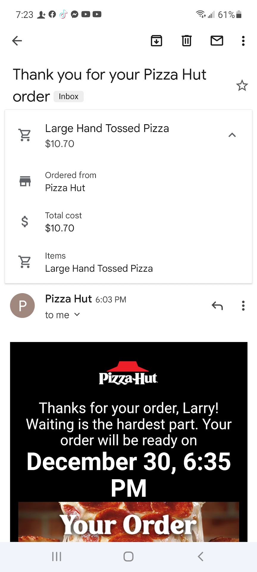Read moreI am BEYOND frustrated and disappointed with this entire experience. I placed an order for the Ultimate Hut Bundle at 10:45, and it didn't arrive until 11:20. First off, the "medium" pizzas looked ridiculously small. Then when my order was handed to me, it was incomplete! The cheese sticks and dipping sauces I paid for were completely missing. To make things worse, the delivery guy practically ran off before I could even say anything, and when I tried to call the number I was given — no answer. I then called the store itself, and the phone rang for over 15 minutes straight with NO ONE answering. Absolutely unacceptable. I paid for a bundle that included cheese sticks, I tipped the driver, and yet I'm sitting here without the food I ordered or the customer service I deserve. This isn't just a small mistake- it's negligence. How can a store ignore calls for that long? How can I pay for something and not receive it? I want this corrected IMMEDIATELY. Either refund me for the missing items or deliver what I PAID for. I shouldn't have to chase down food I already bought. This level of service is embarrassing and completely...