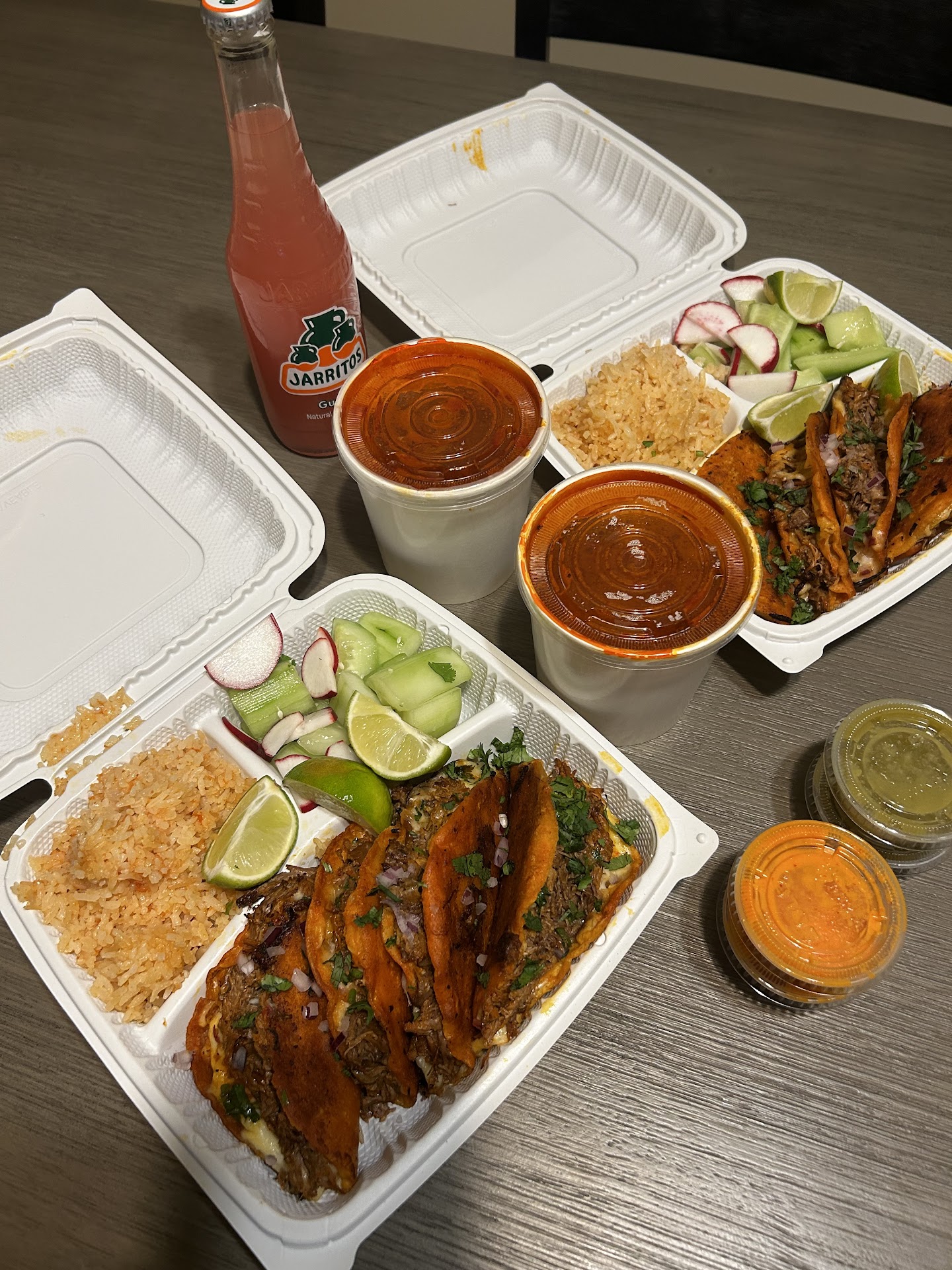 Read morePhenomenal, I got 5!!! Quesabirria tacos for like $16, they were packed with meat and cheese, HOT fresh off the grill and the consume was very tasty. She asked if I wanted salsa I said sure, she asked if I wanted spicy or not I said hot, she said "I'll give you both" I'm glad she did, cause the spicy is very spicy lol. Also got a horchata and loved it, much better than when I've made it myself! Not to mention the side of rice was actually really good too usually I expect dry microwaved whatever rice, but it had a really good texture and flavor to it, much better than I expected from...