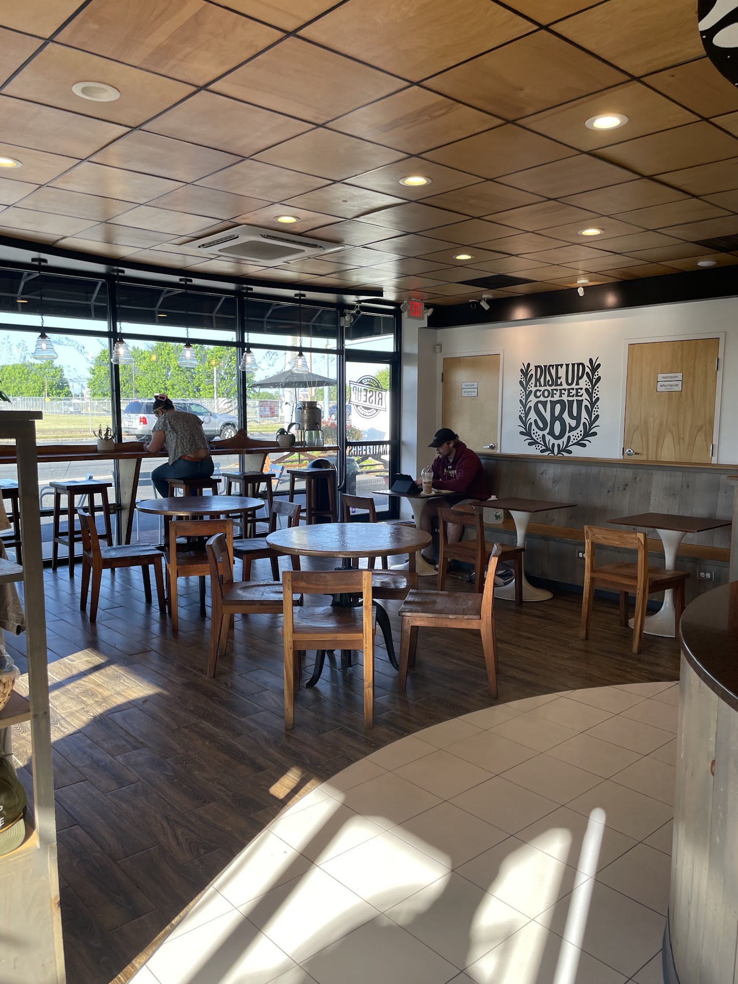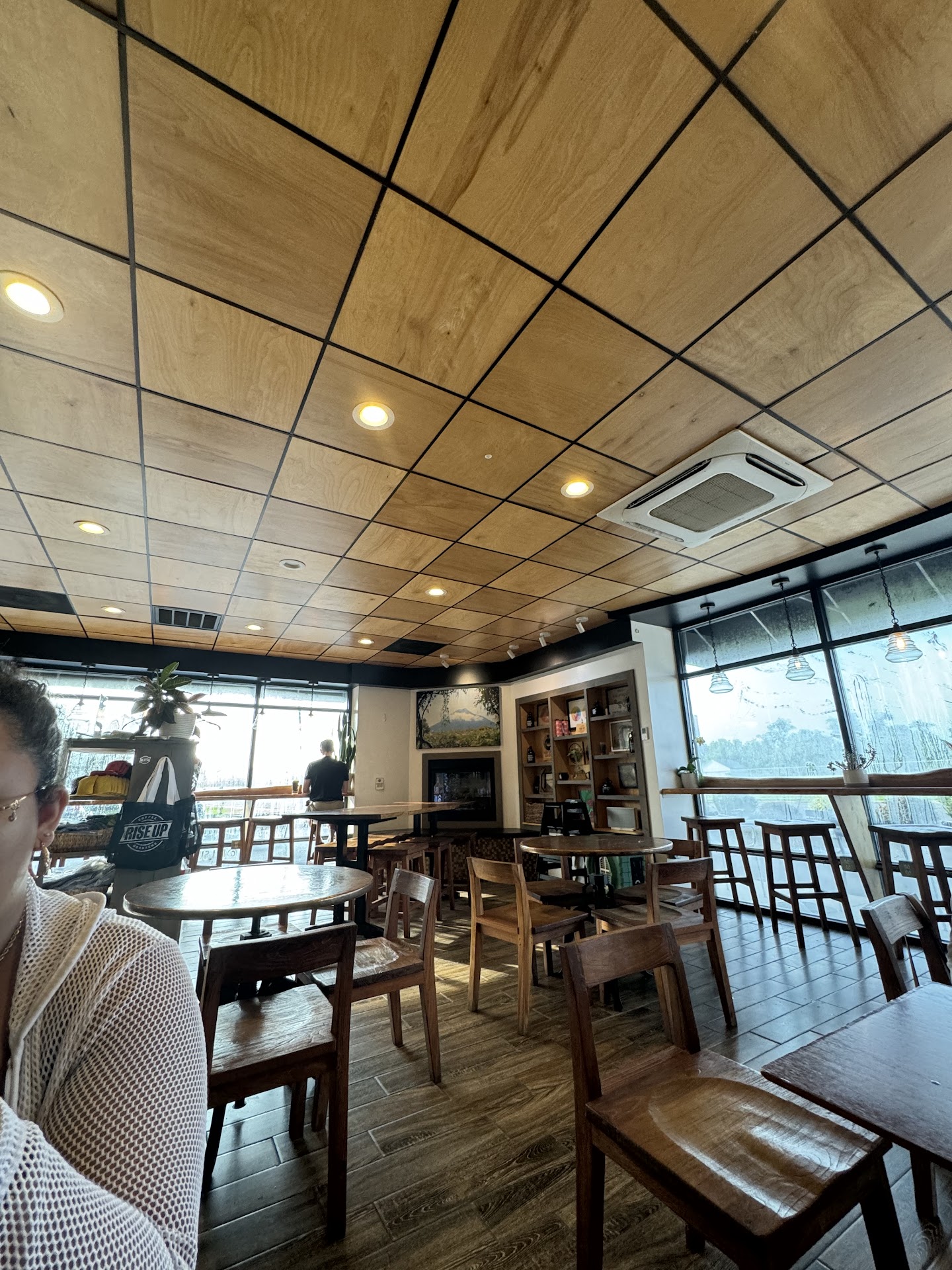 There are a few things I can comment on that I would love to see improved. First: almost consistently across the board at Rise Up locations, you are given a take out cup without question. There are moments where I stay in at the shop, and would really appreciate a true mug. My biggest reason for that is environmental, being that there are SO many coffee cups that go without being recycled every year and as far as Iām aware, there is not a recycle bin at location. I also had a similar experience with my food, where I have asked it to be āfor hereā and had it put in to go containers.