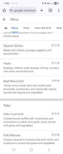 Read moreOverall I was disappointed ... especially due the overall cost; however, let me first say the food that we ate was very good ... starting with the bread. But, in researching for a place to go out to eat while visiting Salisbury, I searched on the internet and saw pictures of the food and the prices. When we arrived and saw the menu, it was obvious the costs were much higher than what was posted on the internet. When I asked about it, the server apologized and said the website information was four or five years old and then asked if I wanted more bread. We're talking over $6.00 per meal off! Then when the cocktail shrimp came out, they only brought out 5 shrimp versus the picture showing 8. I ordered the veal bela boca (or something like that) ... the menu description said "cutlets" ... plural ... but, I only received one small piece of veal. And, I don't believe the menu said my selected item had mushrooms, but it was covered with them (I don't like mushrooms). The portion size was much smaller than what I would have liked (especially for the cost) BUT, as I said, the food that I did get served was very good ... they know how to cook Italian. There servers were very pleasant but the atmosphere is very loud if you have two large groups (like we did) in such a small location. Would I recommend this place? If you have a smaller appetite, then yes; but, if you're a bigger guy wanting to leave a place feeling full, then either this place isn't for you or you need to eat a lot of bread. It is to their advantage NOT to have their internet menu deleted/updated (they say they can't gain access) ... but, ethically, this is not a good practice for a business...