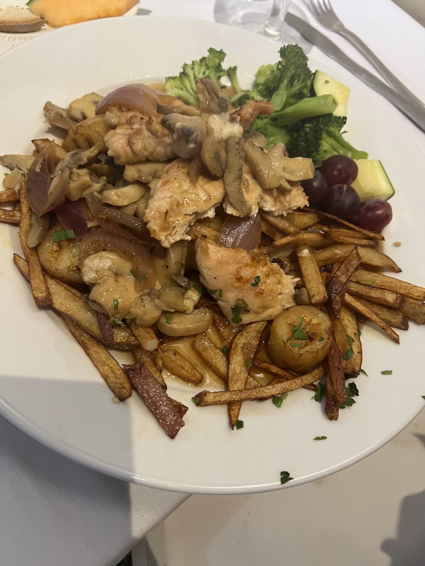 There were only 2 people eating when I arrived waiting on friends for a birthday dinner. Waitress sat me while waiting for them while another waitress asked if I'd like a drink, I said yes. I told the waitress that seated me that my 1 friends order would be on my tab. She told the other waitress and I reiterated that to the actual waitress that take our order, twice. Prices were kinda high but was going to try it. My friend asked the waitress if she could order a child size order for her son and the waitress said yes, of course. The menu stated childsize was $7.95. So she ordered the for her son. Her husband ordered Pollo Cuscinetti it comes with salad and veggies and he also ordered French onion soup & tea. He didn't receive his tea until the food came after asking for it. He never received his salad. We all had to wait for refills on our drinks. Bread basket was empty a while. My friend ordered Pollo Saltimbocca, comes with salad and veggies and she ordered French onion soup as well and tea. She never received her salad either. I ordered the Ravioli and asked if I could get the french onion soup instead of the salad. The waitress said yes, so that is what I did, because this Italian restaurant did not have Italian dressing. (wow!) I should have picked up on that then. Veggies came on plates even though it was not on the menu. The soups came out, it was ok, but the cheese and bread in mine was burnt and put that flavor throughout the entire bowl. Our meals came out 1 by 1. My ravioli came and it looked really bland, the red sauce on it was cold and very sweet it looked like a can of tomatoes were blended with no spices except sugar, and the pasta was warm and rubbery. I asked for Grated cheese and crushed red pepper to try and put some flavor to it. Waitress brought the cheese and said she couldn't find the red pepper... she found it and brought it to me. Keep in mind when I said items were brought to us 1 at a time that was just about everything. We waited again for refills. Keep in mind that there were 3-4 waitresses and only 4 tables taken. We should have never had to wait or ask for anything. We heard the other table that came in after us ask for their salads after they were brought their meals. We asked for the bill after waiting for someone to bring it to us and the waitress asked how many bills and again I told her 2 and then told her which 2 on each. She brought the bills and they were all wrong. We brought them to the register and one of the waitresses tried fixing them but it kept getting messed up. Then she tried to charge full price for the childs meal and after 3 attempts I looked at the prices that we were being charged for the other meals and they were all higher than the menu pricing. The waitres tried to say it was the tax raising the price, but the tax was at the bottom of the bill. Then she said she would give 10% off the kids meal which was priced as an adult meal over menu price. When it should have only been $7.95. After all the attempts she got the owner to come out and try to fix it. He had one of the other waitresses pull up a meal in the register and again the price was higher than the menu (over $1.?? more), and we were charged full price for the soup when the other two adults ordered the salad that was included and didn't get. The waitress never said any price difference for the soup instead of salad. According to the menu the soup was $2.00 more than the salad, but the register had it almost $3.00 more so I should have been upcharged the $2.00 difference. At this point the owner said it's on the house don't worry about it, come back another time. I made it perfectly clear we would not be back and I said no, I appreciate that but no. I just want to pay the correct price for what we ordered. The waitress said that the computer and the menu do not match (no kidding). My friend said just let him comp the meals and tip the waitresses. Of course I said for what? And I walked out, she ended up tipping them. Will not be back. Poor excuse for Italian food!! Check your bill...