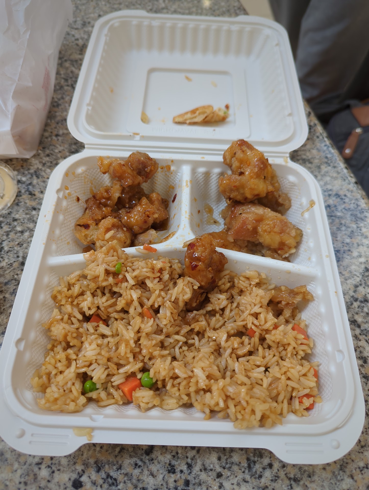 There are not many choices anymore for food at the Salisbury Mall. In the food court, all food businesses are on the south side of the food court except Sizzling Wok, which is by it's lonesome on the other side. My girlfriend decided to eat there and my choice would have been different but I decided to order from there with her too. I wasn't expecting a lot of food but boy was I surprised when they crammed a lot of food into a white plastic container! And the food was great! Especially the bourbon chicken! The only sore spot was that the service was mechanical. No hello or thank yous given here which is a shame because many people will be turned off by this and won't return. I would think that they'd want to be friendly considering many businesses have left the mall and what's left is highly competitive. If you can overlook the indifferent service and just go for the food, you'll not be dissapointed. Yes,...