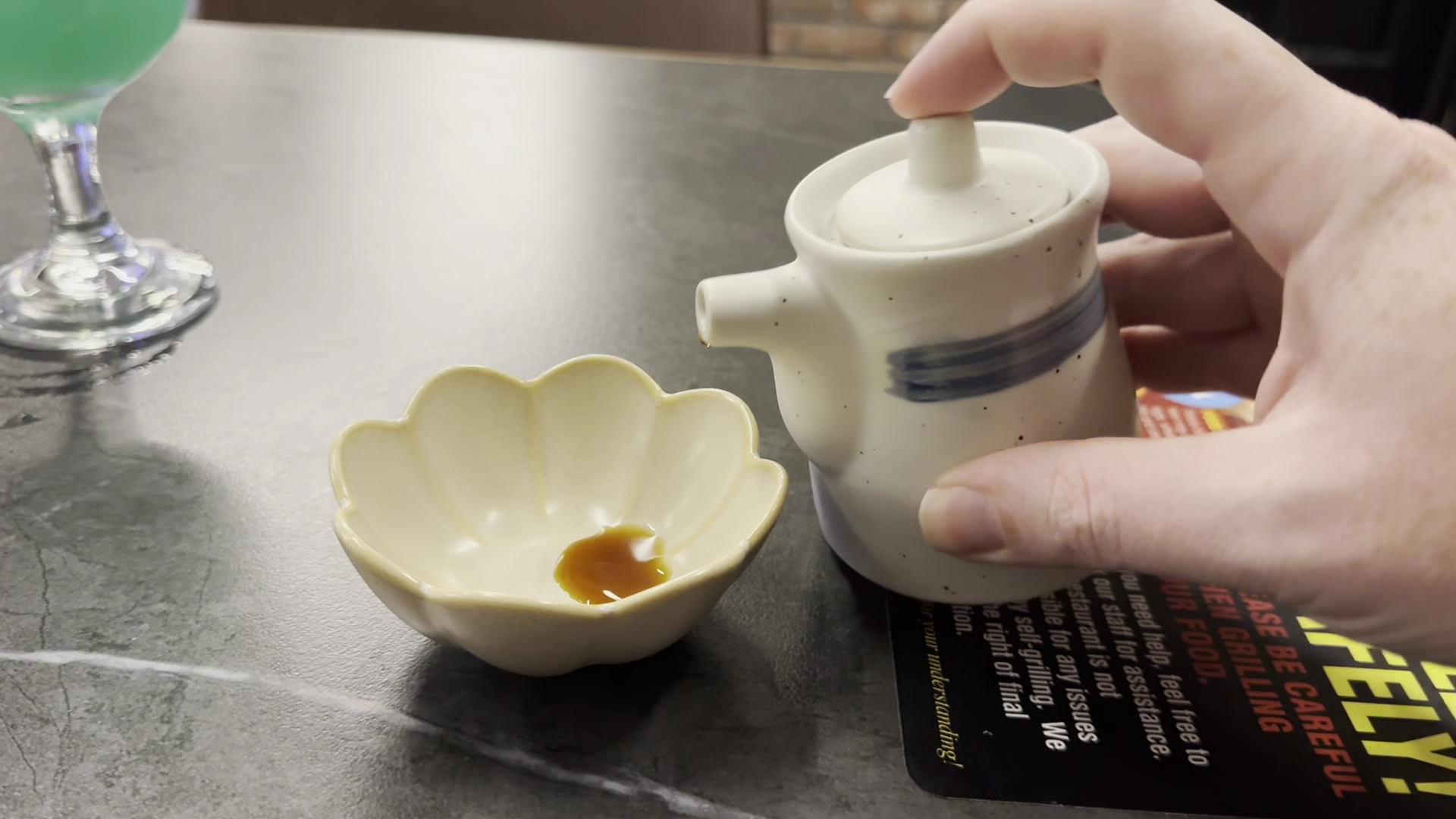 Side note: the soy sauce was in a cute teapot-style dish that pours into a nice bowl perfectly. The metal plates for eating the BBQ items or sushi pieces are stylish and very nice. Good additional touches. There are k-pop music videos playing on screens on at least on side of the restaurant that create some noise overall, but it adds to the atmosphere I think.