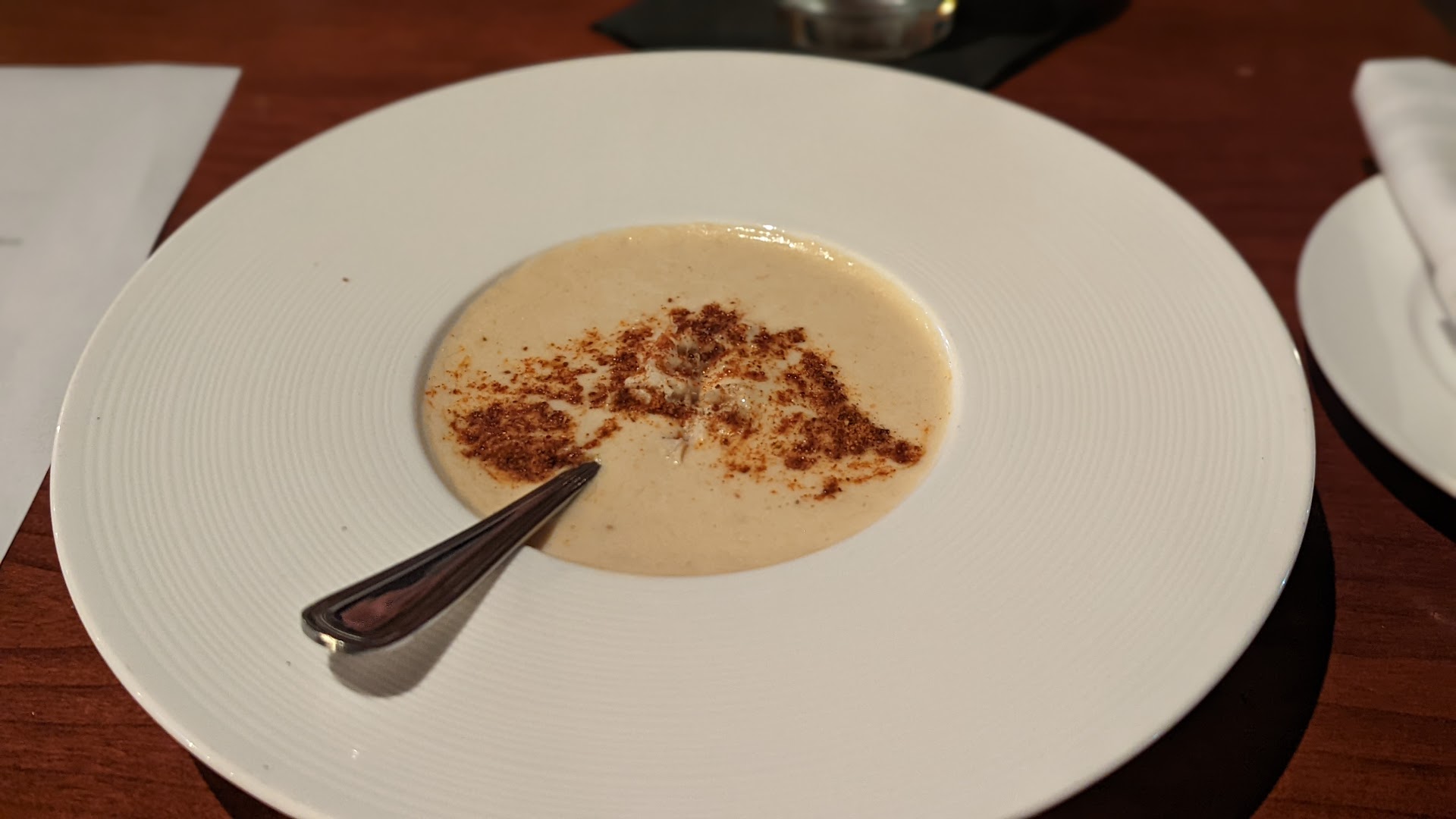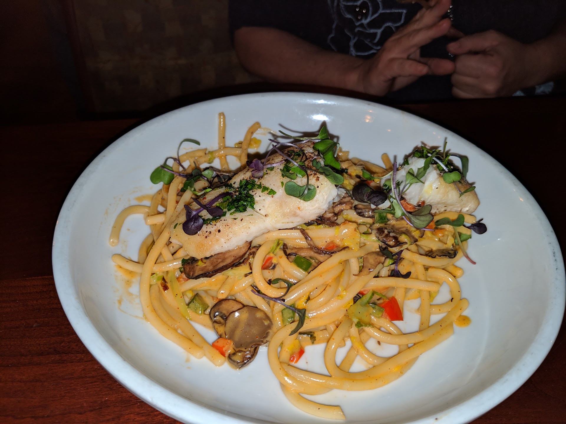 Almost forgot. I order coffee to go with my dinner. As I noted above it comes in a french press. The waiter came back with the coffee quickly and the plunger was already pushed down. Naturally the coffee was a bit weak. I raised the plunger, but the grounds had already been pressed down so were not free. I still finished the pot and ordered another. I told the waiter not to press the plunger ths time. I waited several minutes before pressing the plunger and pouring. Still a bit weak, but better. Perhaps to few grounds?