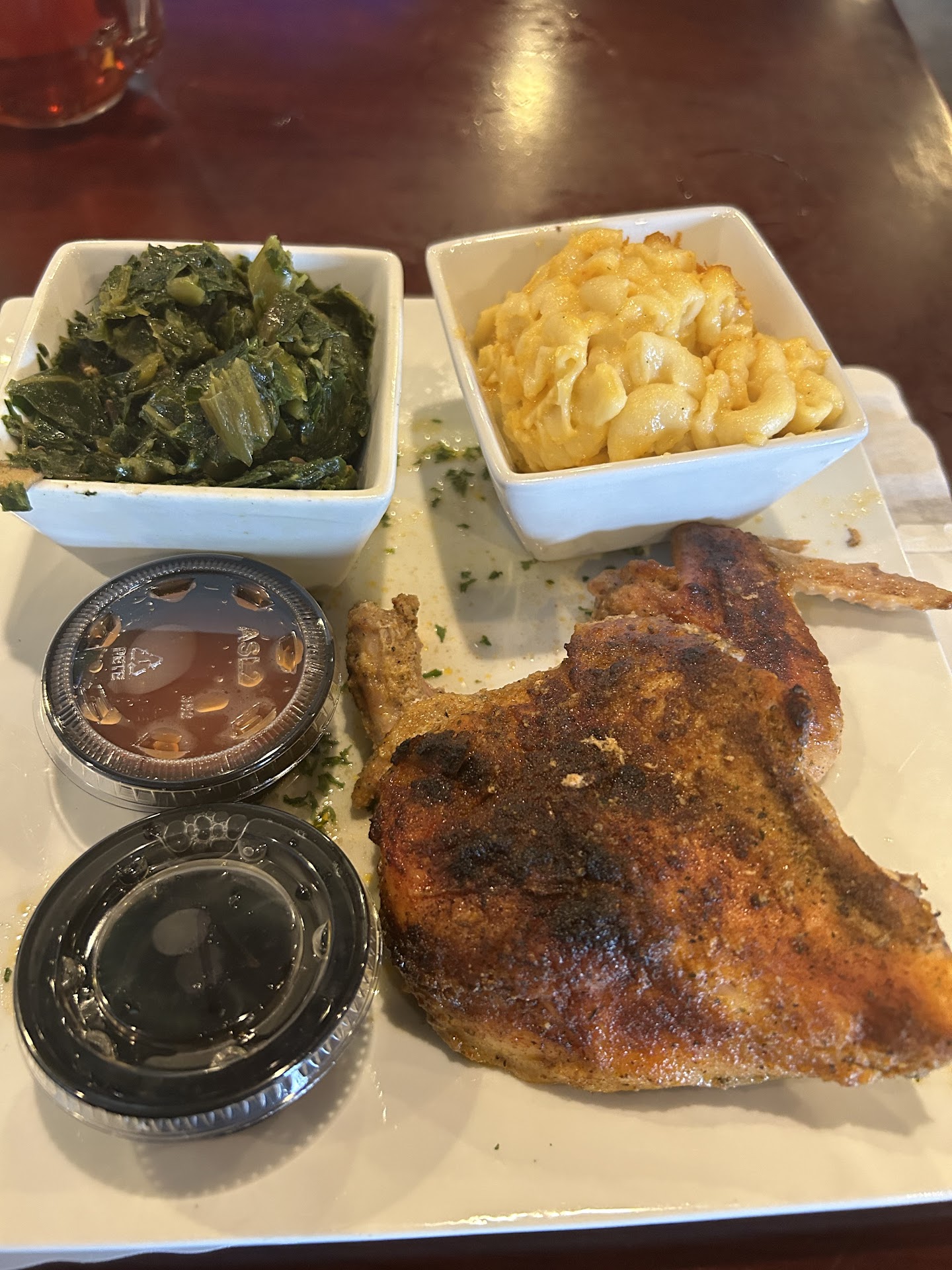 Read moreThis is probably the BEST soul food restaurant I’ve ever been to in my life and that’s saying something because I’m originally from Georgia. The ambience is very unique and inviting and makes you feel like you’re right at home. Our waitress Ruth was so amazing. She was very polite and knowledgeable about the menu and was patient with us as we were indecisive about what to get because everything looked so delicious. Let me first start off about the sweet tea. This sweet tea is the type of tea that your grandma made back in the day. Not that watery watered down type of tea the other restaurants serve. It was so delicious and Ruth made sure our cups never ran empty. I had to make sure that I got a to go cup with no ice in it to make sure I can relive the flavor. My partner and I ended up ordering the special with the half rack, ribs and the chicken that came with two sides. The ribs were so tender that the meat was practically falling off the bone. I’m not sure what barbecue sauce they use, but it definitely was so good it made you lick your fingers. The chicken was seasoned just right and tasted so good as well Now on the sides. Finally some mac & cheese that taste like some southern mac & cheese. Not the watery box mac and cheese that these other restaurants try to serve. This Mac and cheese was the definition of perfection. The collard greens were delicious as well. It tasted good without it, but I appreciate a restaurant that gives you vinegar and hot sauce to put on your collard greens. And last but not least the yams. Oh my gosh, the yams are off the chain. Yams so good it makes you want to slap your momma. I had to order some to go, just so I can eat it for dinner later when I got back to my hotel. The Candied Yam is an all around five star restaurant for me and anytime. I’m back in the Salisbury area or near the Salisbury area. I’m definitely coming back to this place because it can’t be no longer...
