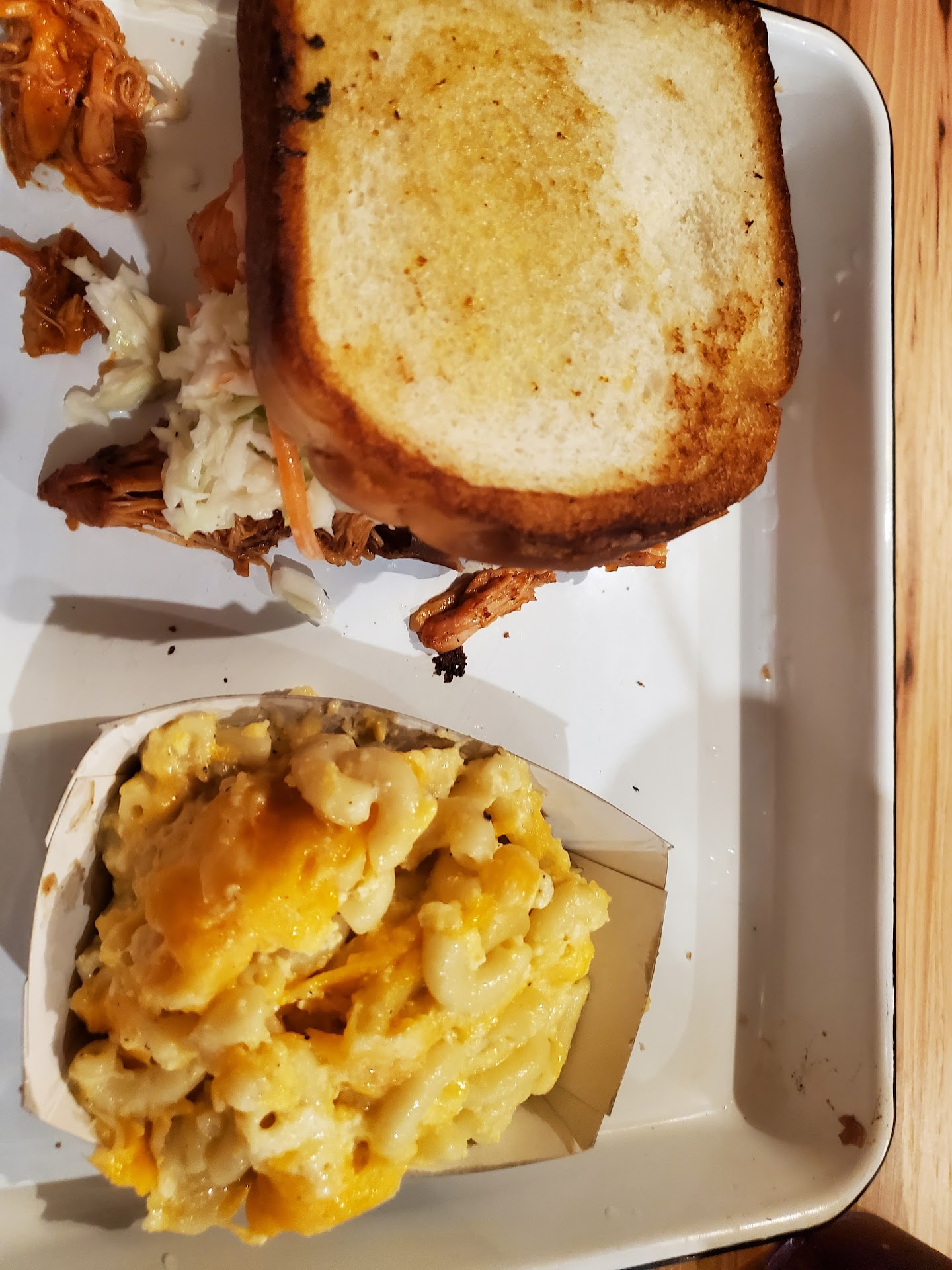 THIS IS MY SECOND REVIEW NOW THAT THEY'VE MOVED It's loud in here and heaven help you all if there is a screaming child. The acoustics are not set to handle those decibel levels! Bring earplugs for yourself if there ARE the screeching children (there were TWO tag-teaming it ---what's wrong with their parents??? Just saying, "Sssshhh" won't cut this mess of hollarin!!) Even without screeching children, it's loud in the place - makes it hard to talk. We were served by the new guy, first day on the job, totally didn't have his stuff together "new guy".... but he WAS TRYING! All our food came out as ordered, hot and delish. Kept our glasses full and checked in on us. We ordered the bbq chicken sandwich, pulled pork sandwich and several tacos. All were great and the sides of mac n cheese were hot, creamy and cheesy! Good food. We'll be back!