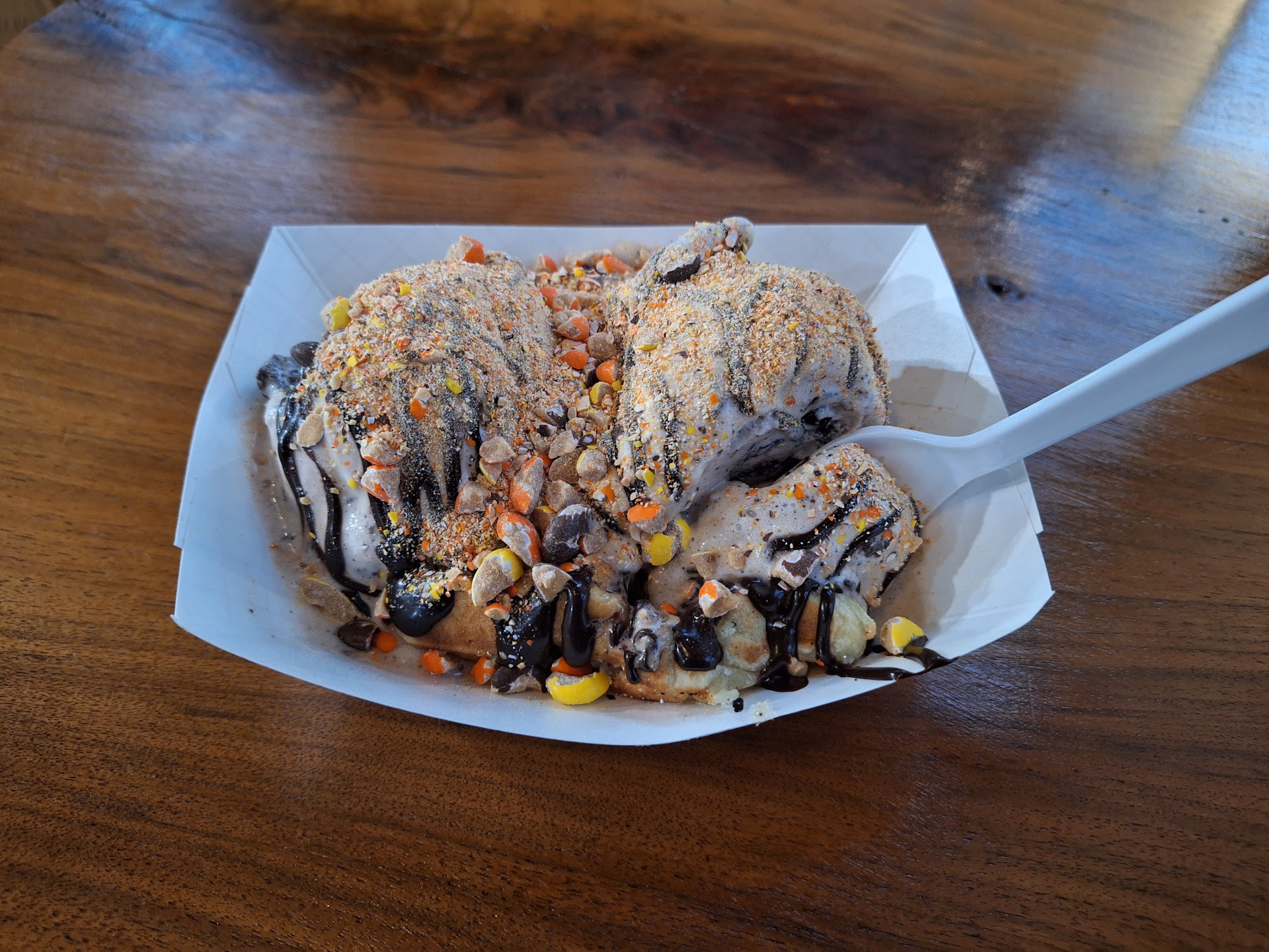 The ice cream was delicious and I was happy to support a local establishment but the reason I’m giving it only two stars is there was only one table in the whole place. It was not clean, there were only three chairs, and I had to move a decorative lantern so we could share our food. And the waffle was not fully cooked! That’s a big problem for me if the only cooked item wasn’t even cooked through.