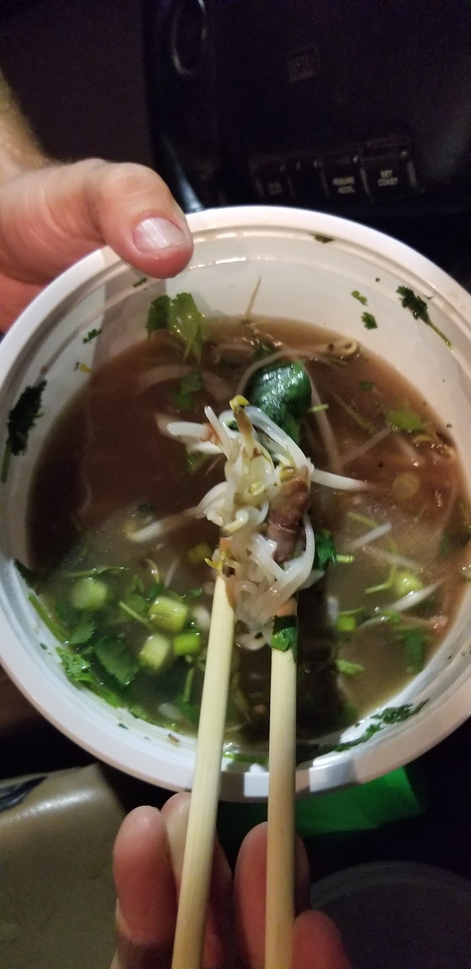 Edit: the pho has improved drastically in the past months. It is something awesome. Absolutely delicious. I got my regular bowl tonight and brought it home. Pho deluxe, extra noodles, no jalapeños due to allergy, and I don't use the limes so they leave them out :) My boyfriend gets the same, and also the Vietnamese BBQ fries