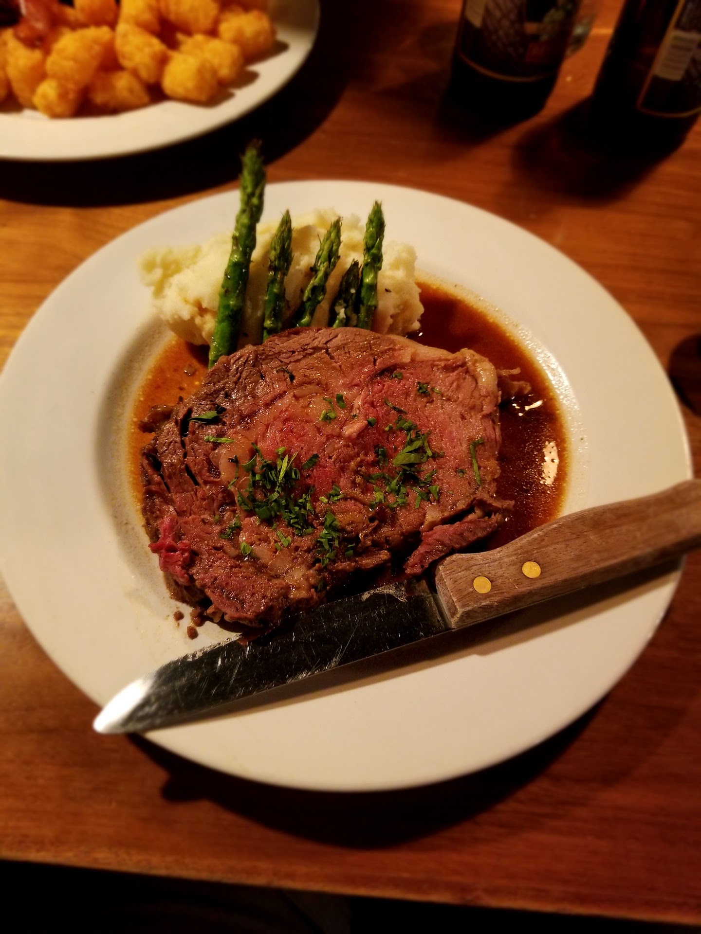 Service: 3.5 stars--NOT very packed on the Friday night we went, but service was a bit slow. Waiter was polite. Brought out room temp water, no ice. Later brought out ice water for 2nd round. Took them forever to get a basic dessert out "because it's made from scratch" (words of the waiter)...lol...good to know you didn't buy cobbler from a store pre-made?