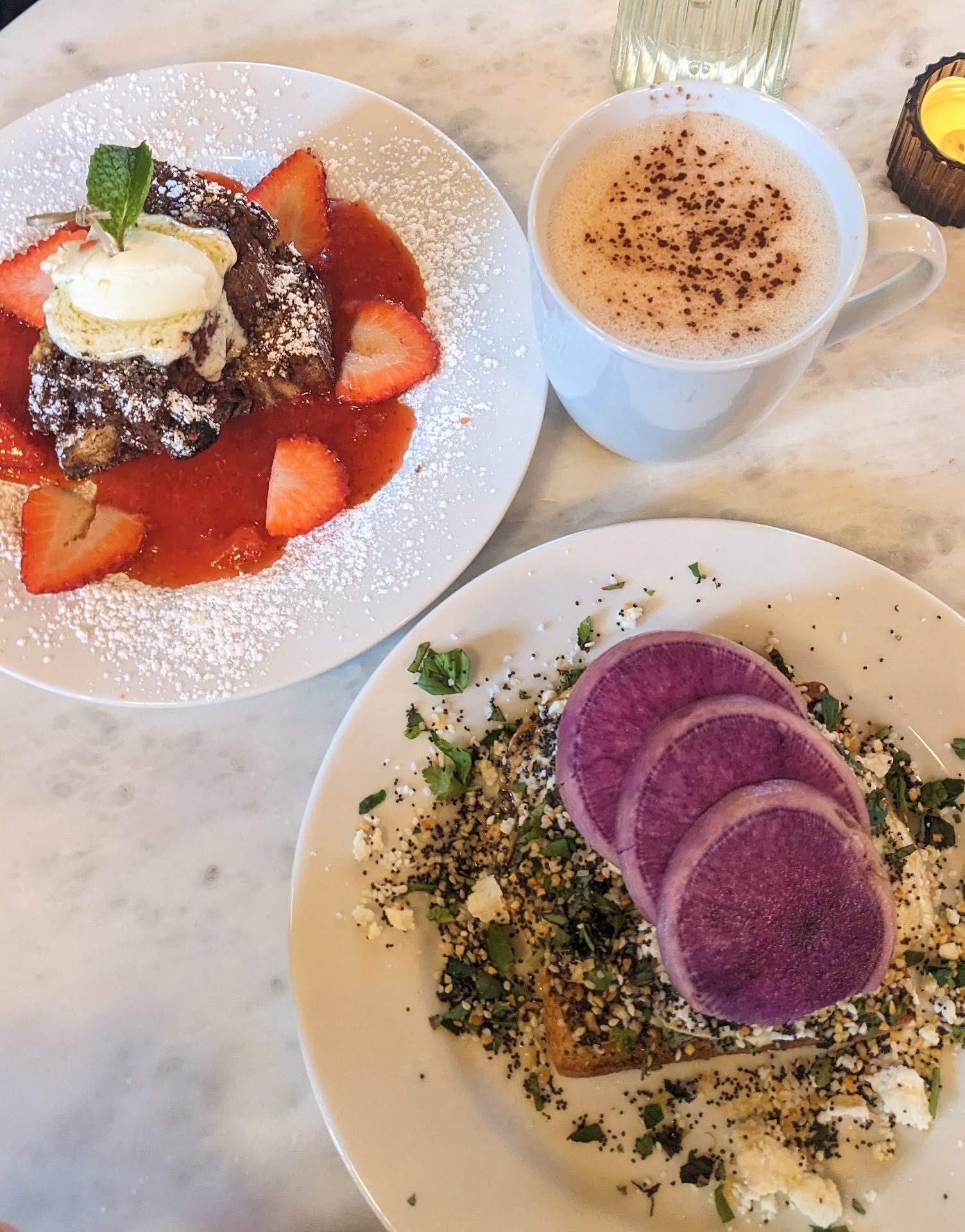 Now the food was out of this world. I cannot stress enough that you have to try the brulee French toast! The avocado toast had unique flavors and the chai latte had the perfect amount of cinnamon spice. We completely cleaned our plates because everything was so good!