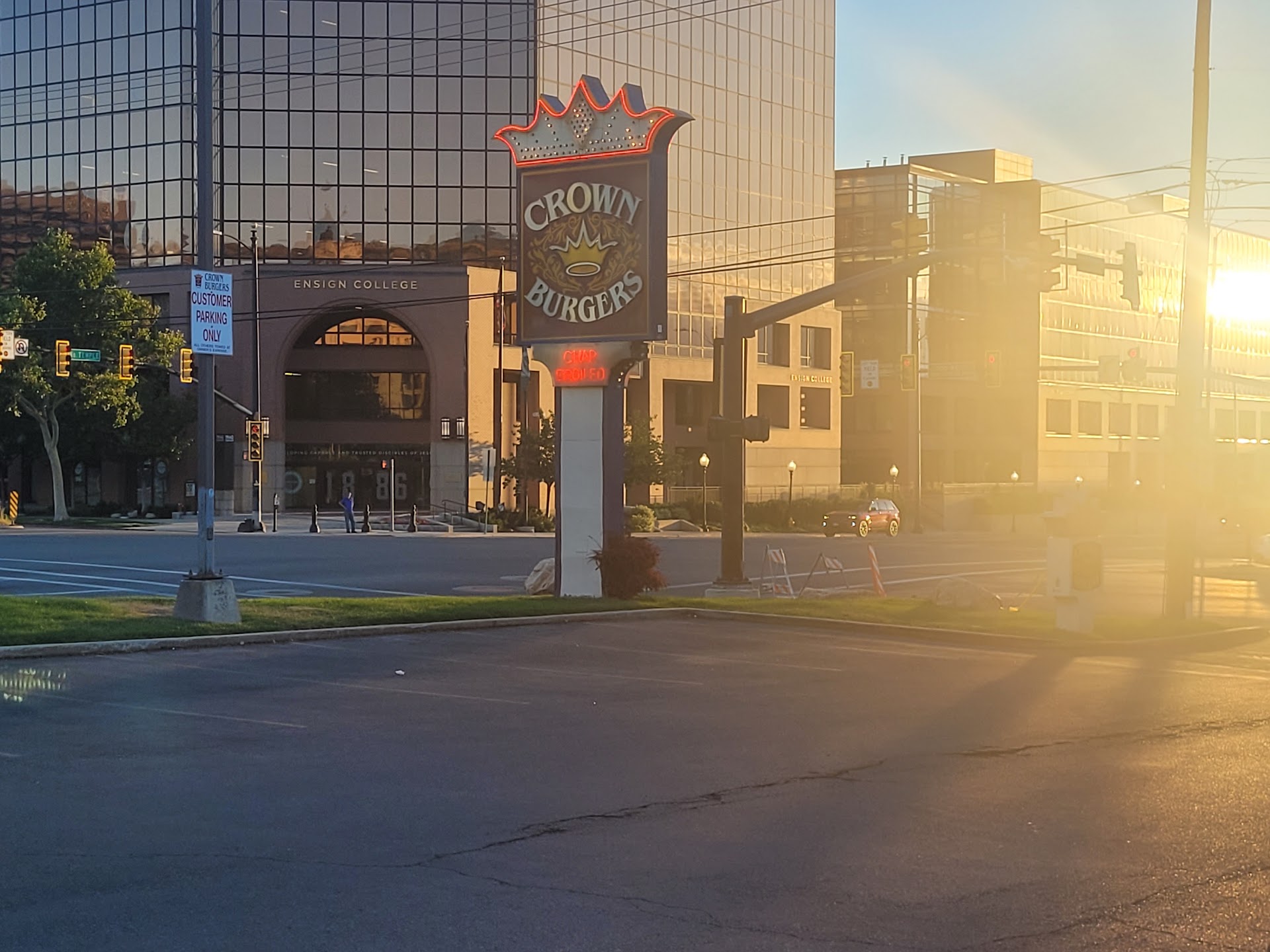 Meet up with my daughter to eat. Happened to be the night of a jazz game which we didn’t know or care care about since it had nothing to do with why we were customers there. Went there because we love the sweet potato fries. Apparently this location doesn’t have sweet potato fries Not only that but we visited for a bit in one vehicle upon leaving then went to my daughter’s vehicle, only to find it had been towed. Asked gentle man in parking lot. He told us crown burger was suppose to have given us a parking pass to put in cars…which we never got and though it wasn’t quite 9pm we tried to talk to someone in the store about this.. they said closed and that they didn’t speak English. Called another day to see if crown burger would help us appeal as we could prove we were customers there. First lied, telling me I was talking to a manager. Then when finally given to the actual manager he refused to listen to us. Refused to think it was possible we didn’t get something to put in our car. Just yelled the same thing at us over and over again that they didn’t have anything to do with towing even though we were parked in their parking lot. That there were signs… which when it is dark and lots of traffic we could not see. No sign where we were parked by building that we saw. So beware … our burger and non sweet potato fry ended up costing over $400. With no willingness to help their own...