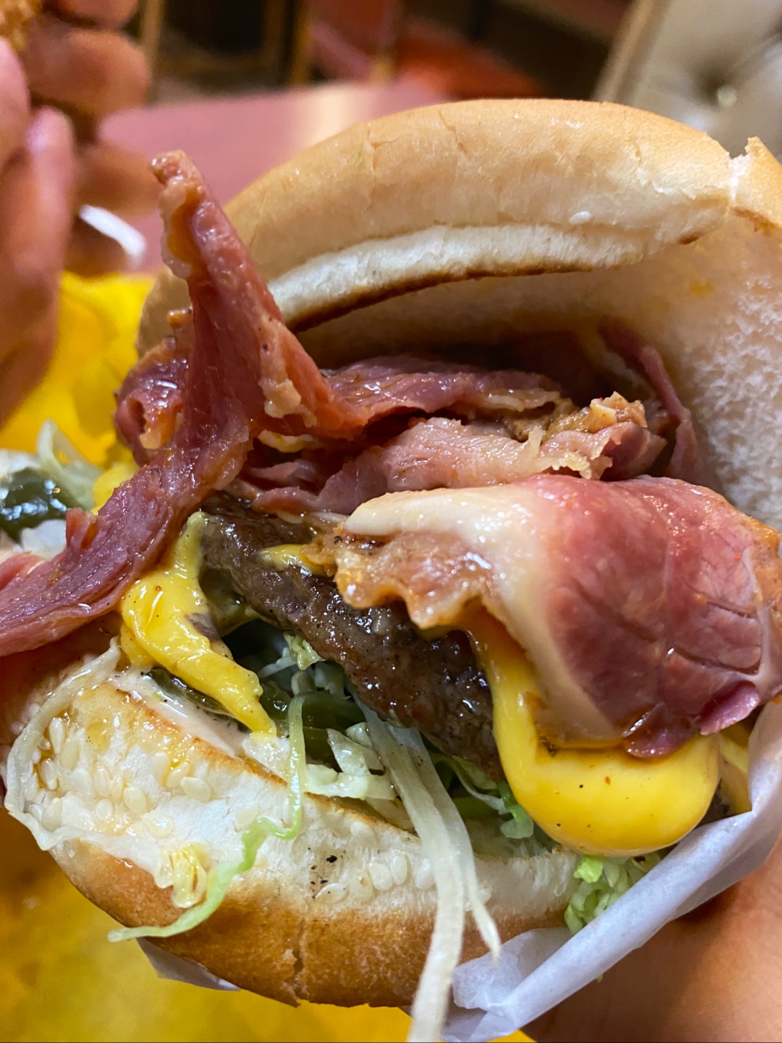 Read moreWell, the Crown Burger is obviously what people want to go with! There is just something really delicious about throwing a heaping stack of pastrami on top of a hamburger patty. There is just one problem with it: I'm always tempted to stop by the bread store and buy good buns that are made out of good bread, take that into Crowns, and have them put their delicious fixings on my buns instead of theirs. My biggest complaint about restaurants, when they have a good burger or sandwich but they use bad bread. It's like they go and buy wonder bread on discount from a discount grocer before they end up clearing the shelves. It's horrible. Use good bread guys, and I would go in more than once a year. I've tried other items on their menu, and everything else is underwhelming. The fries really aren't that fantastic, they just don't provide the WOW factor for me. Restaurants are dated and dimly lit... I'm not really sure what the huge attraction is. Everyone really loves the Crown Burger though, which is a pastrami burger on sesame seed wonder bread that is bland and boring, ...Oh, the seats and booths aren't very comfortable, I guess that would go along with the...