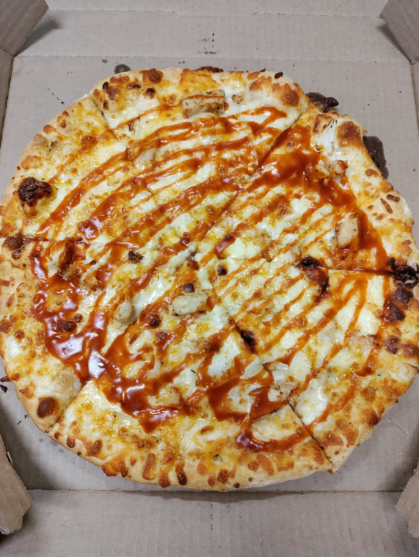 I made an online order. Pretzel twists which come with a marinara sauce. BBQ Chicken which I added some toppings to, and the California Ranch which I did not amend.