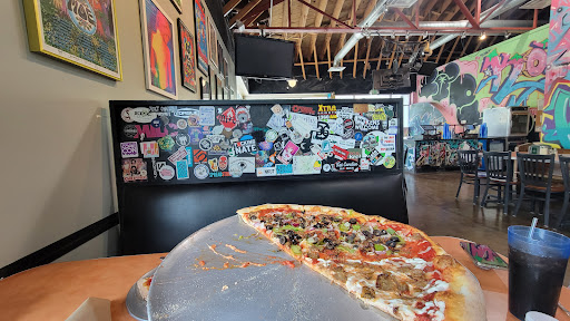 Atmosphere - Real cool vibe in this place. You can see the cool decals all over the partition and graffiti walls. Real cool art, and I'm not a graffiti buff. Open ceilings. Great music! Cool rock and roll 70's - Today. Heard some Stones, Halen, Sublime...