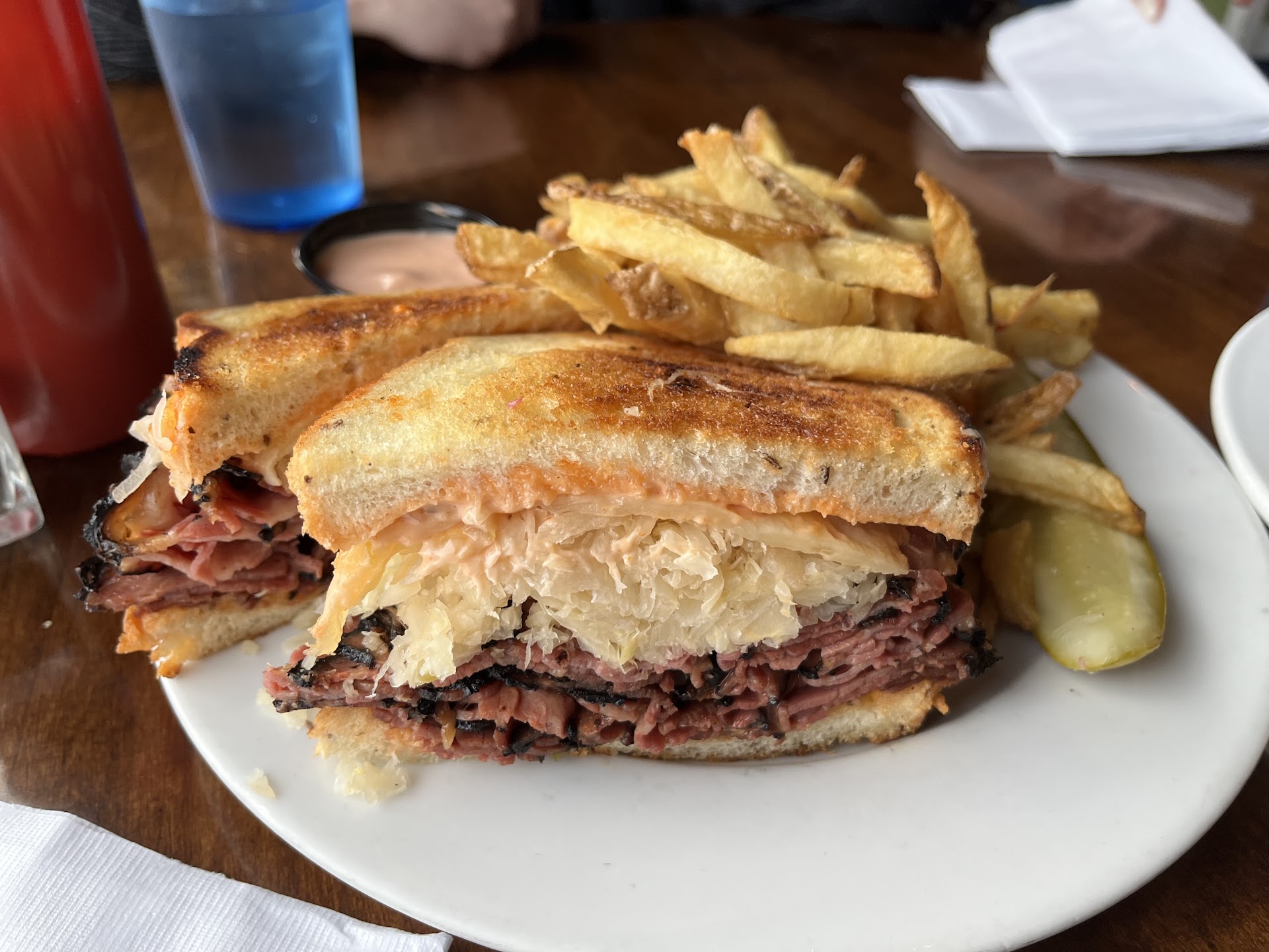 We had dinner plans with friends and decided, after seeing the size of these 1/2 lb. sandwiches, that it was best to split one. The food came out really quick and I have to say, this was the very first time I tried rye bread. I've avoided it for years, but my wife wanted it, so I had no.... complaints.