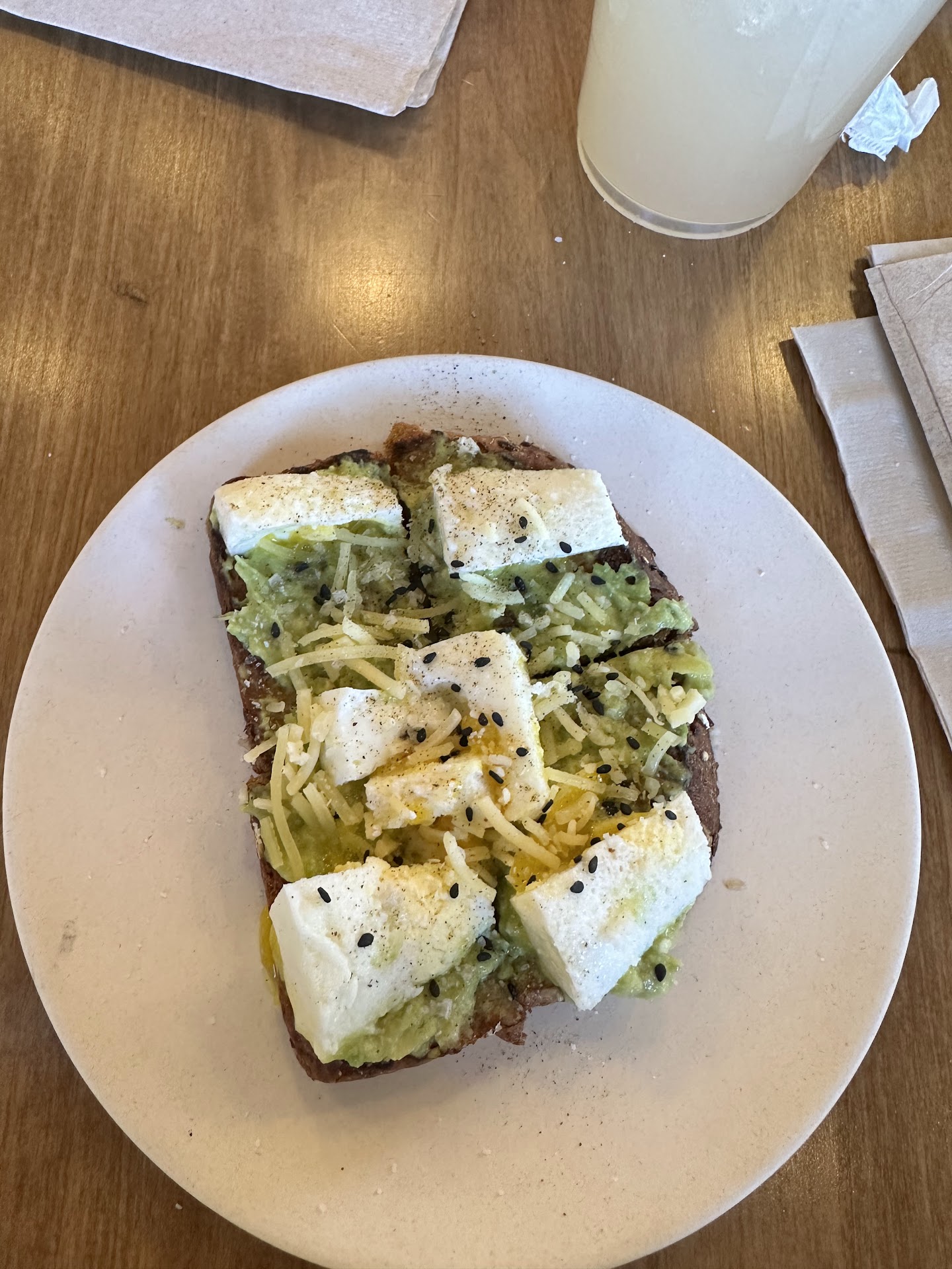 My husband ordered the Flying Avocado with a side salad, but the salad was old -- over-dressed and wilted. I had the salmon plate with kale salad and cauliflower risotto. The kale salad was also heavily overdressed, and the risotto was bland and served cold. The salmon, to be honest, was laughable and reminded me of dry hospital cafeteria-style food. The one highlight was the queso, which at least arrived warm and was enjoyable.
