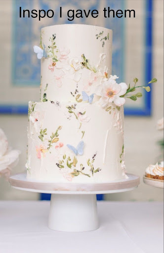 TLDR; this bakery is unprofessional and super mediocre. Don't get any of the hype. Just go to Smiths lol. (Not to mention the review I just read from a couple years back from a past employee describing their disgusting sanitation practices (no gloves!!!)) As others have mentioned, the customer service is definitely lack luster. Truly very annoying to work with. I went to a bridal wedding cake tasting and everything seemed normal. Must say however that the flavors sounded unique and enticing, but all kind of tasted THE SAME. (Either tasted like plain chocolate or vanilla, not even a hint of the other flavors haha they really live up to the cheap price they charge). We wanted floral decor, which they said they couldn't do exactly like our picture because they don't make the right kind of frosting. We understood and just asked if they could make something similar. They said they could.