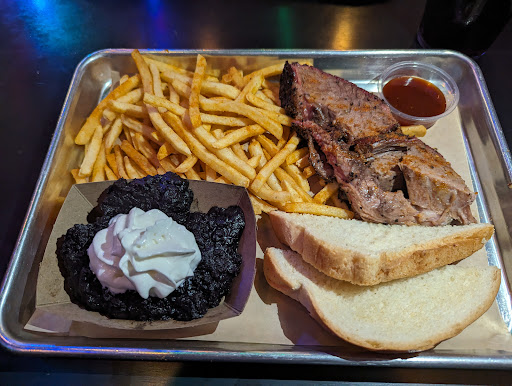 Ā Ā Ā Read moreWe did not have a good experience at this place. It was a Saturday and pretty packed, noisy, and bustling. The way they handle the workflow of customers and food is confusing and not intuitive. The workers are running around building orders and none are very friendly or helpful to customers. You order yourself at a kiosk, grab a vibrating, blinking, light bar and go wait for the food to appear on a tray. They were out of several products, including the pulled pork that I wanted. I ordered the brisket which tasted like a simple, non-flavorful pot roast. The fries were good and crispy. The Purple Yams were amazing and exceptionally delicious - I could eat just that it was so good. And the "Ruby sauce" was a tasty combination of ketchup and BBQ sauce, however, they don't give you enough for your meat. I had half a small container to use on my large slab of meat and fries. My wife thought the mac and cheese was lovely and enjoyable. However, we were not impressed over all and probably won't be back, except maybe to get more...