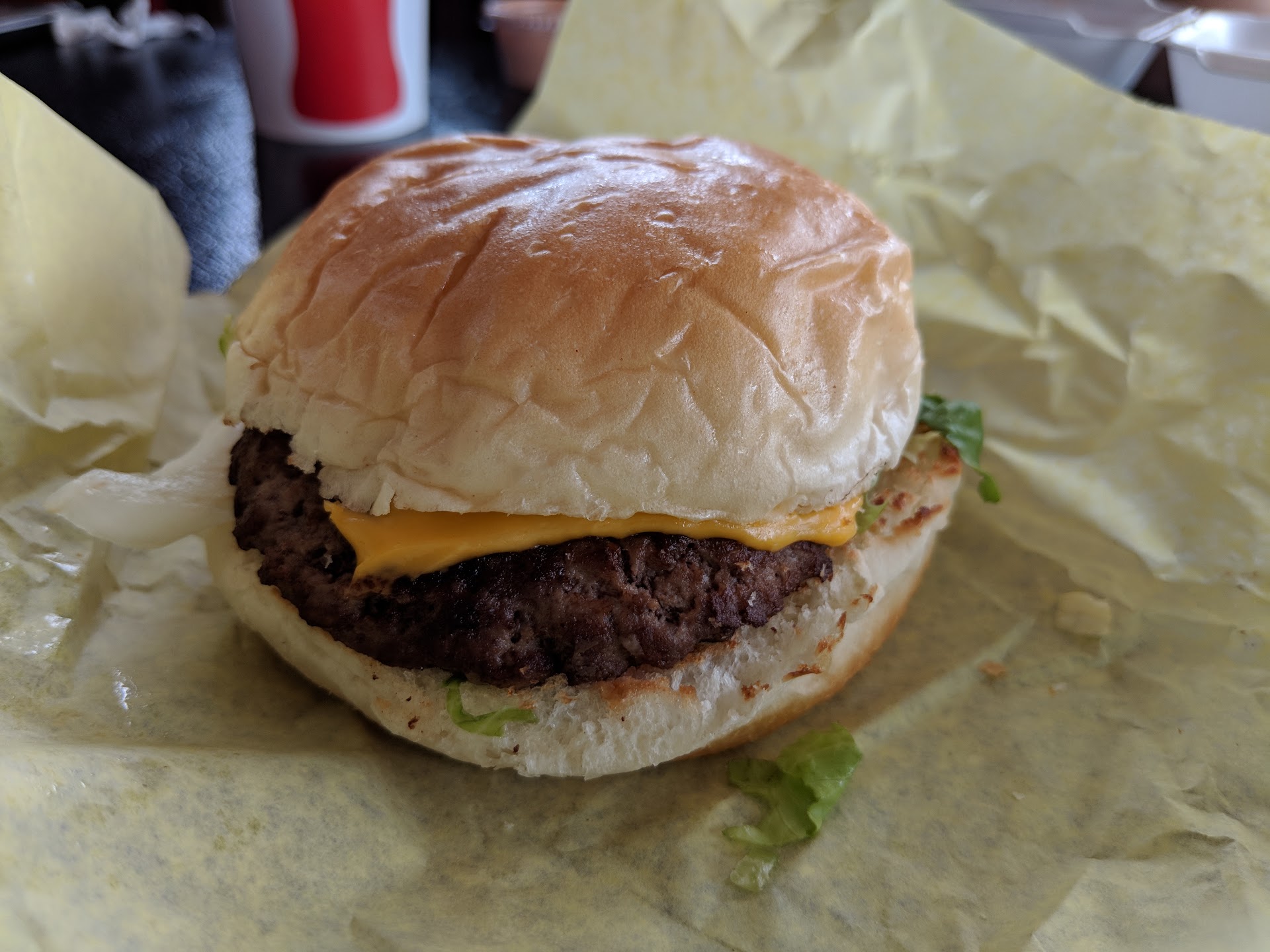 Read moreThis was my first time here. My husband had been a couple times years ago and loved it. He said he could never figure why he never took the time to go back. This place was charming and fun. When you just want a good burger and fries, this is the place. There was a cute lady behind the counter that made you feel so welcome and warm. There's nothing confusing or over done with their food, so it translates into a simply satisfying meal. I had a cheese burger and a small order of cheese fries. I haven't had cheese fries this good since Training Tables good days way back when. Now I know where to get some! As for thr burger, clean and simple and tasty! Just a thin Patty with cheese, ketchup, mustard, mayo and shredded lettuce. In my opinion, the best burgers are ones with shredded lettuce. The jun, I could have eaten alone. It was soft, chewy and...well, bready. I loved every bite of my burger and fries. My husband had a grilled chicken sandwich, aka the chicken burger. He woofed it down before I could get a picture of it. That thing was super piping hot. it had a beautiful brown crust and was super moist inside. He also had fries. He never eats all his fries and he ate all of them this time.
