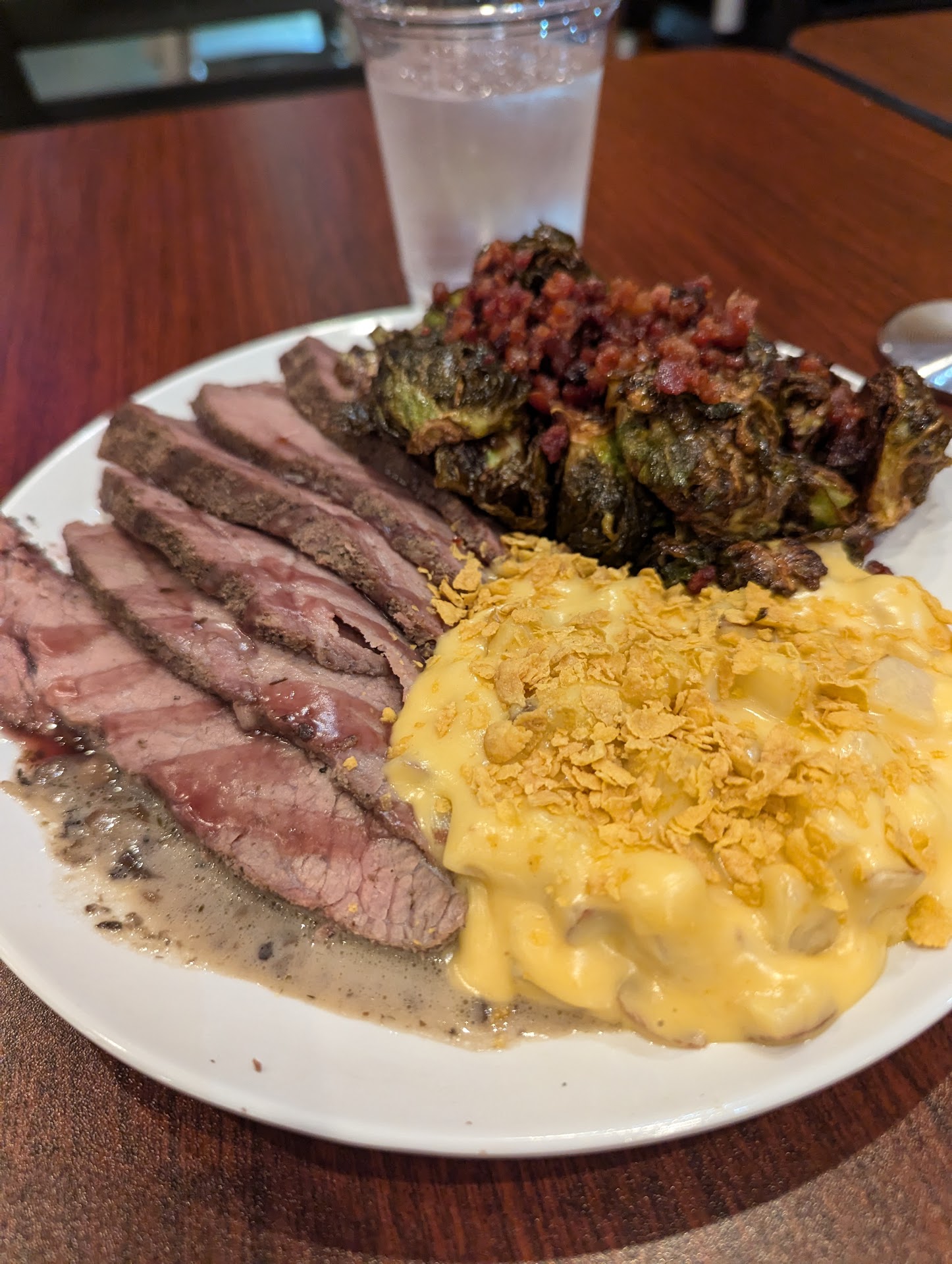 Read moreExtremely disappointed... The menu looked delicious. That's why I stopped in. Wanted to try something new. Got the tri-tips with funeral potatoes and brussel sprouts. The food was cold, not even like a little warm but cold. And yet the meat was very overcooked, I thought it was sous vide, So it should have been tender and made to order, at least that's what I expected. Food appeared to be sitting in a hot well but it wasn't very hot. It looked like remnants of the reduction on the meat, which again laid me to leave the food's been sitting in a pan for quite a while. It was tough and not that good because it was cold, old and overcooked. The brussel sprouts were good, And they were closer to serving temperature. The funeral potatoes were super cold, And bitter it looks like they used cheese sauce from a can or something. And then they give you plastic cutlery and 1 cheap paper napkin lmfao... I mean seriously. Am I eating at fast food restaurant??? And you can buy wagyu for $30/60 more, why would I want to eat it with cheap plastic cutlery? I'm glad I did not do that. I was about to, That's part of the reason I came in but then I could tell right away that something was off here. The portabella mushroom duxulle was bland, and cold too. Very watery, And the flavors tasted off. One of the worst meals I've had in awhile. I was pretty much the only person in there and nobody checked on me. There was a couple in there for a bit when I first came in and looked like the owner was talking to, But nobody engaged me. I almost didn't eat the food. I'm worried about the handling of the food here because it should not be served at that temperature. Whoever your chef is needs to spend more time in the kitchen and pay more attention to what's going on in there. It's too bad because your menu looks Delicious and appetizing! And if you would executed, you would probably have more people...