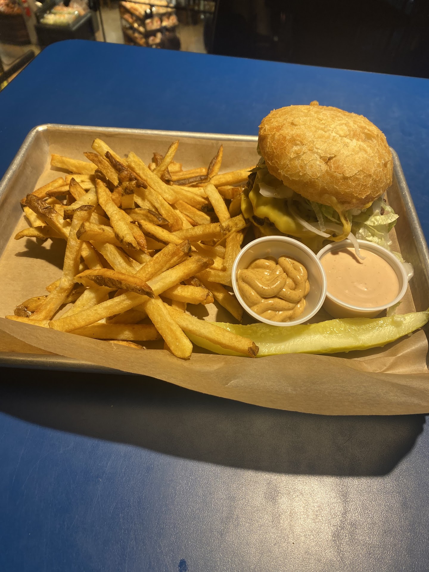 Read moreI like that they have a vegan option, but I think they're just categorizing all dietary preferences into vegan. Which is a little extreme. Also, a $3 upcharge for a premade patty is definitely extreme. I just wanted the vegan patty, but with cheese and a normal bun. I even confirmed it with the person taking my order as she asked if I'd like it cooked on a separate surface. Again, very thankful. But I still ended up getting no cheese and the stale vegan bun (a constant problem, because I imagine the turnover for vegan buns is longer than their freshness date.) Also, their fries are cooked in beef oil. So, for no additional charge (or discount) they gave me bagged chips. Again, I appreciate the vegan option, but I felt like I was being punished for...