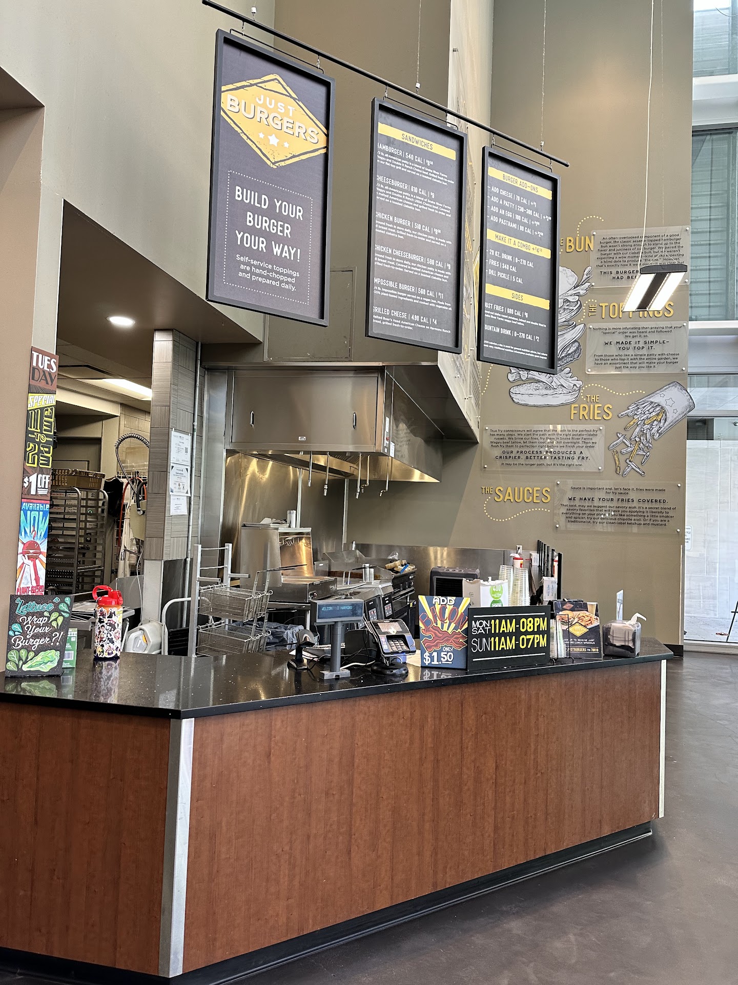 Oddly enough this restaurant is located in the downtown Harmons bit that makes it all the better because you can conveniently grab some groceries while your food is being cooked. Even if you need no groceries you can pop in and out very quickly as Just Burgers is right inside the door.
