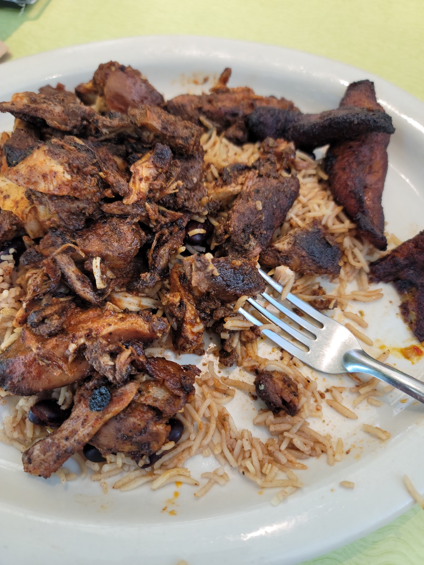 Ā Ā Ā Read moreOut of all the restaurants I have had in all of the countries I have been to, this one takes the cake as my favorite. I got the jerk chicken platter, I have had jerk chicken a few times before. The jerk chicken was so good I dang near cried. It was served over a bed of rice and beans, which were both excellent. The jerk chicken itself had a fair bit of spice to it, but a much deeper level of flavor. It was seasoned to absolute perfection. On the side were some fried plantains. Typically, I don't like plantains; however, this plantain was amazing and acted as a great palate cleanser to re-enjoy the initial shock of the chicken. My wife got the surf and turf, which consisted of the same ingredients, with the addition of shrimp and a papaya mango habanero sauce and a slightly different seasoning on the chicken. The mango habanero papaya sauce was decadent, with a subtle heat to it. The shrimp were amazing, and there was a good amount spice to them. Both me and my wife ate until we were stuffed and had a whole other meal leftover. The portions are massive, and you definitely get your money's worth. We will be returning and bringing all of our loved ones because they need to...