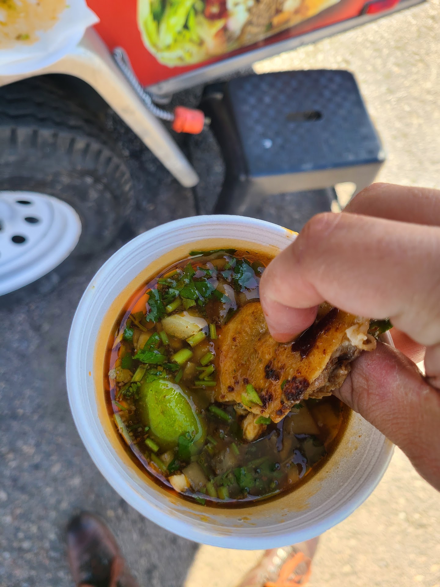 Read moreI spoke with who I think are the owners (husband and wife) both are super friendly, good customer service. And the food was absolutely fantastic. I ordered 3 tacos. One asada, one chicken. And one adobada. All 3 were awesome.They had about 4 or 5 different salsas. I had the green, and Avacado salsa, again both were top notch. Lots of fresh onions and cilantro you can help yourself to. I WOULD definitely try this place out if you haven't been here. Best tacos I've had in a loooong long time. (I later came back and found they also serve quesabirria tacos, which will cause involuntarily smiling when you take a bite because they are...