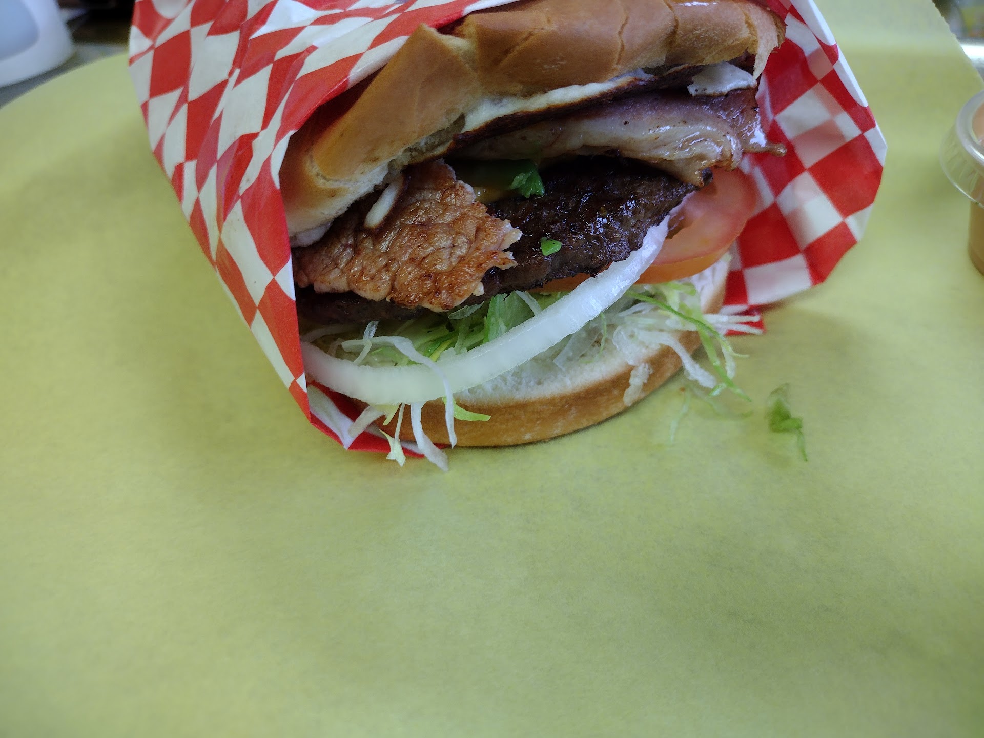 My family and I arrived to order, the cashier took 5 minutes to attend us because she was supposedly in the bathroom, despite that we started ordering and for each hamburger she persuaded us to add grilled onions, pineapple or double meat since without those she told us that "it would not taste the same."š¤®