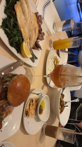The entree is where everything went South. My wife and I both ordered Lavraki, and frankly it was insulting. It took nearly an hour for the dish to make it out of the kitchen and the food itself was comical. The branzino might have been the smallest, most expensive filet of fish, per ounce, I've ever paid for. There can't have been more than three ounces of fish per plate. The "pan roasted lemon potatoes" was nothing but one or two fingerling potatoes run through a mandolin slicer and then roasted. I'm not exaggerating when I say that it was two small fingerling potatoes at most. Adding further insult and confusion, the micro serving of potatoes on my wife's dish was inconsistently cooked. It boggled our minds how such a small portion of potatoes could have slices that were essentially burnt to a crisp and others that were literally cold to the touch. The remainder of the dish was a heaping pile of braised kale. Although well cooked and seasoned, the portion was so incredibly out of wack with everything else on this dish that it was impossible to make it though even half of it without feeling like I'd just grazed an entire field. "Kale Bloat" (translated to Greek of course) may be a more suitable name for this dish.