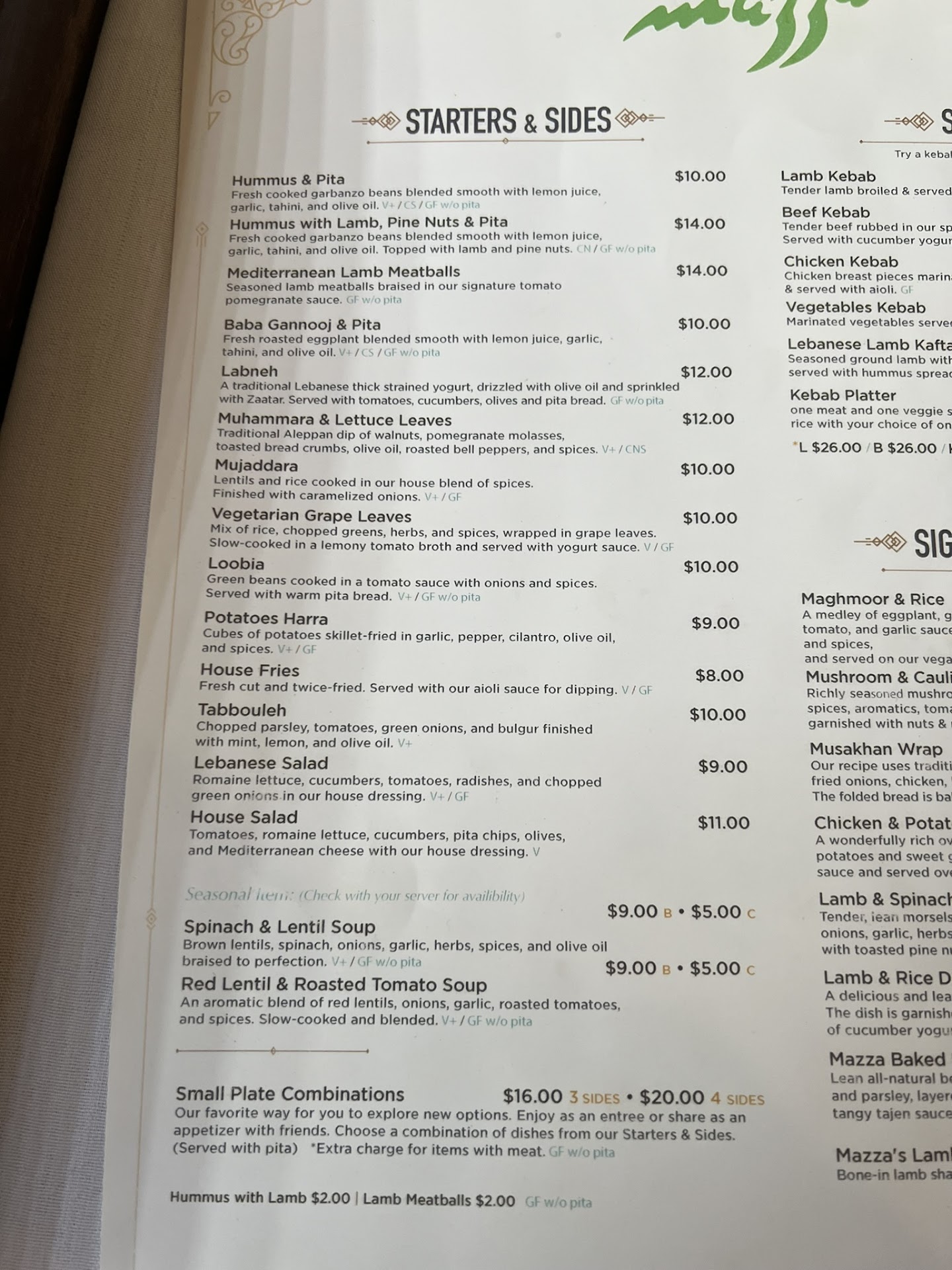 There are great skewer plates of lamb, beef, chicken, or combos. All served with the most pillowy pita that somehow is both fluffy and sturdy enough to scoop all the sauce left on your plate. I love Mazza's shawarma more than any I've had, even in the Gulf, even at the famed Fakreldine restaurant in London (now closed). Flavorful and tender, with those great skinny Lebanese pickles, and I'm always tempted to get one to go as well. They're THAT good.