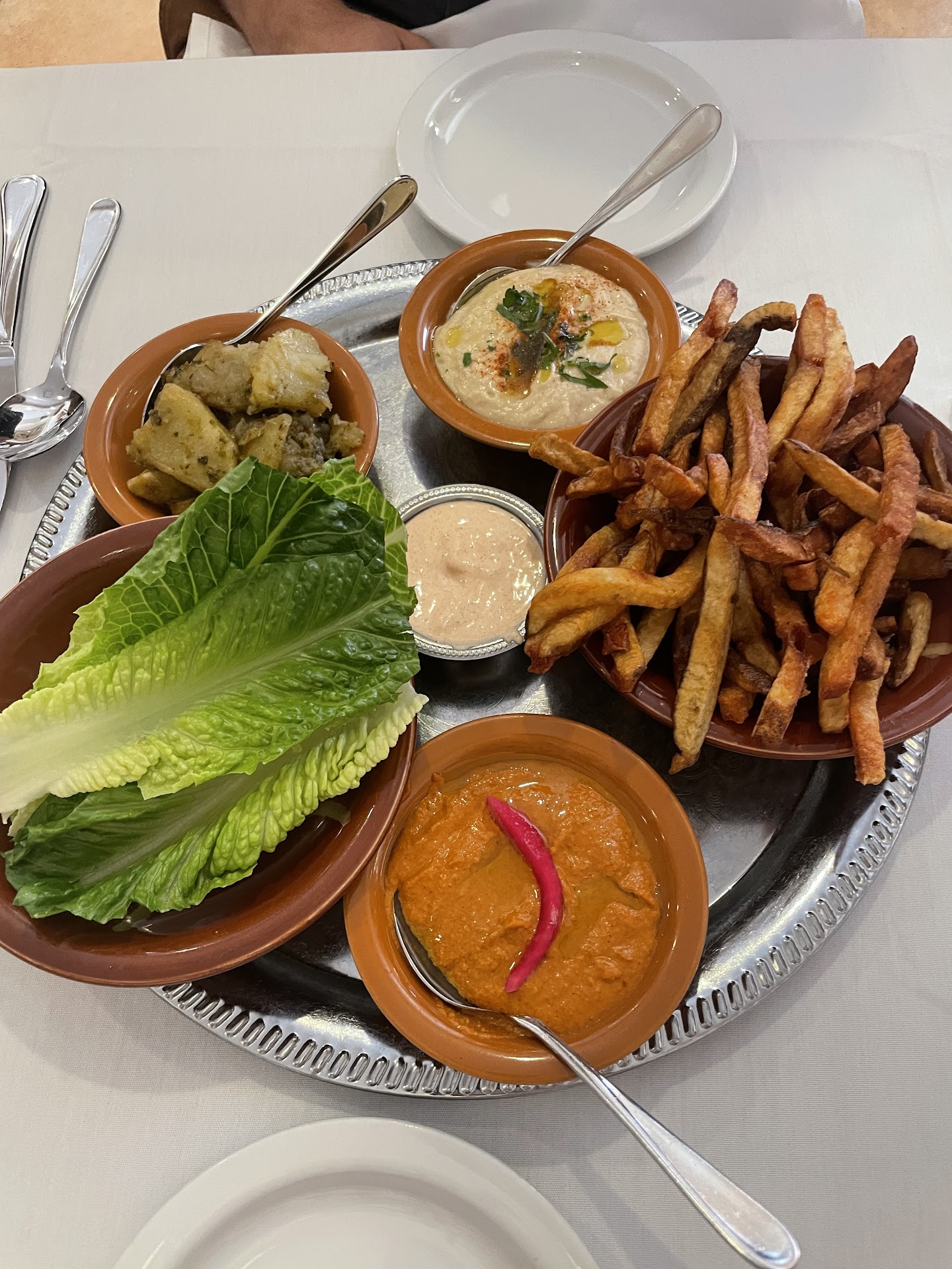 The wine list is carefully curated, and they have Arak, my favorite. That's an anise infused clear liquor served in tiny glasses over ice which makes it cloudy, and it goes perfectly with the mezze. Like ouzo, without the cloying syrupy sweetness. Think anise eau de vie, and you're about on target.