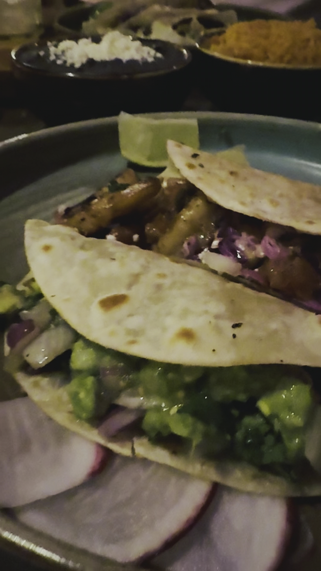 We grabbed a high-top with the perfect view of the action, and our server, Angel, immediately welcomed us with, “It’s Taco Tuesday—$5 tacos and $8 margaritas.” SOLD. We didn’t even know it was happening—best surprise of the night.