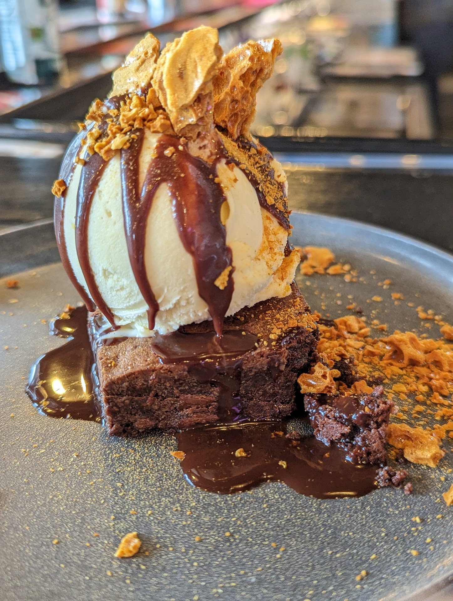 We shared the peaches and cream desert, but the name should be punches and scream... get your own!! Im a chocolate lover but the homemade granola was to try and the blend of peaches and cream was the perfect pair.