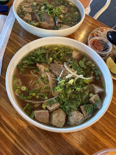 Iām happy to have discovered an authentic Vietnamese restaurant! Iām Vietnamese myself and felt assured that this place would be good after I saw that the cashier and chef were Vietnamese as well. After several days of visiting Utah I had a hankering for Vietnamese food. Iām one of those Asians that travels and has to find Asian food to eat after 3 days of non-Asian food. I tried the garlic ribeye banh mi, dac biet pho (had flank steak and meatballs), Thai tea, mango coconut che (Vietnamese pudding) and an orange soda. The pho was accompanied by fresh bean sprouts, Thai basil and jalapeƱo. The bowls were generous and my picky toddlers ate it up! The meat in the sandwich was tender and my picky 2 year old son (who always rejects meat) ate it! The bread was toasty without being hard or overly flaky. It wasnāt too thick or doughy either. The acidity from the pickled vegetables added a nice contrast to the sweeter garlicky meat. The sandwich was nicely cut in diagonal pieces making a great cross section! The Thai tea was sweet and tasty. The interior was open and casual where you order at the counter, get a number and then take a seat. The interior had ceiling fans that kept the space cool and fun baskets and plants on the ceiling. My husband said the mango coconut che was the best che heās had. I didnāt get a chance to try their bun bo hue because I was too full but it was part of their specials menu. I think they have a private parking lot in the back but thereās also street parking in the front. It looks like Guy Fieri has visited here and liked their banh mi thit! They have several other locations...