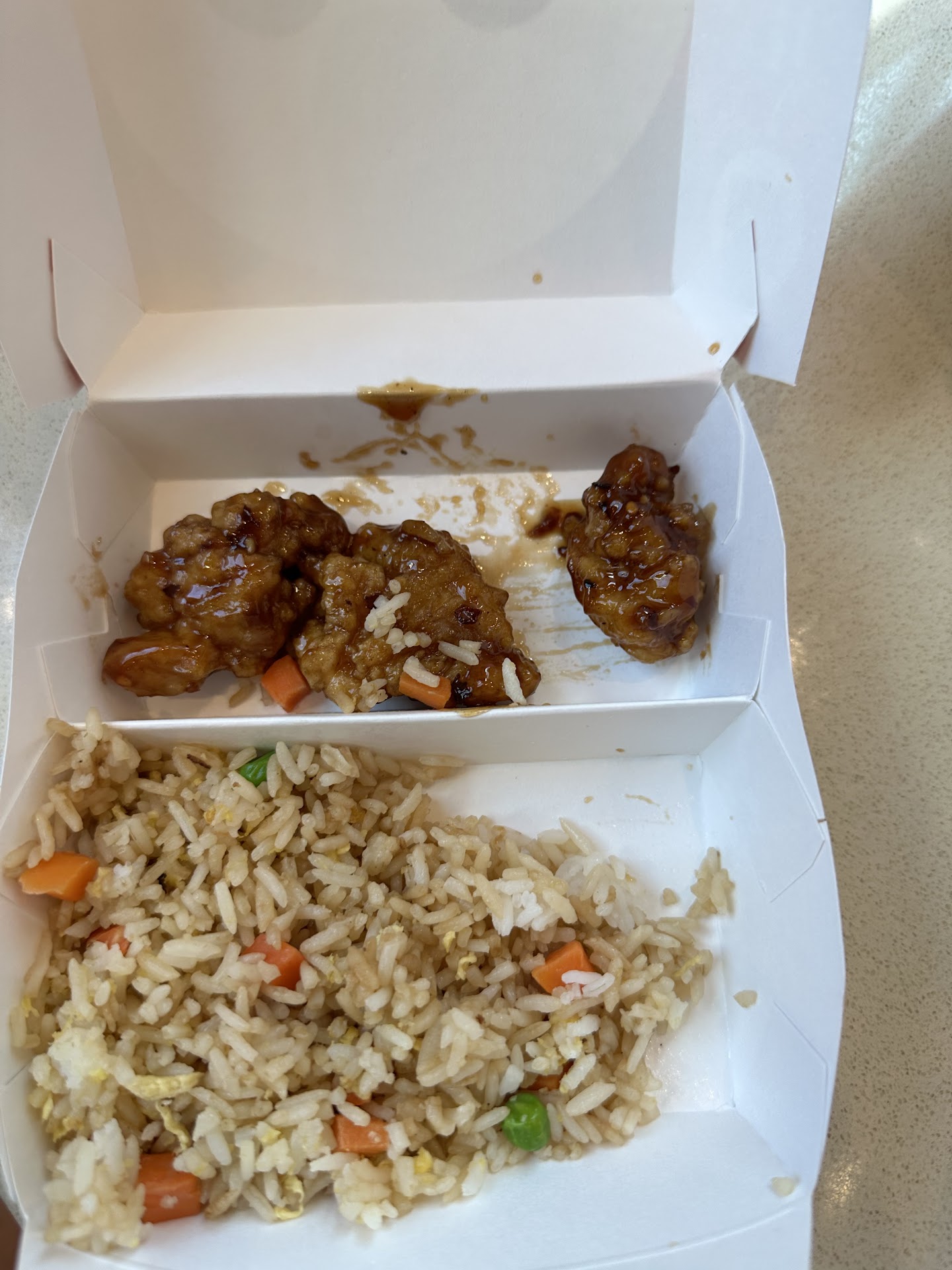 Read moreWhen we walked in, they told us it would be a wait for rice and the string bean chicken to be ready. Since they said it was only a 5-6 minute wait, I said I would wait for it. I paid at the register and they gave me a bag with spring rolls in it and said they would call my name when it was ready. 10-15 minutes go by, and they call me up. There’s a note on the register that says “no receipt? Enjoy your meal on us!” Well, the girl hadn’t given me a receipt when she rang me up, so I asked about the sign. She says she gave it to me, I say she didn’t, she goes through my bag, doesn’t find it, then goes through the trash under the register and pulls my receipt out. She tries to give it to me at this point and I refer her back to the sticker on the register. She goes to get her team lead, who comes to tell me they don’t give refunds but they can give me another meal for free. I ask why they even have the sign then if it’s false advertising. The team lead said, and I quote, “We can’t give refunds once you’ve already paid us.” What?? You wouldn’t get a receipt until AFTER you pay, how does that make any sense?! Take the sticker off the register and be honest about the time it’ll take to make the food, but it was especially frustrating that the employees were arguing with me about something that was explicitly stated on a sign in front of my face. If they don’t give you a receipt, don’t even bother asking about the sign, it’s not...