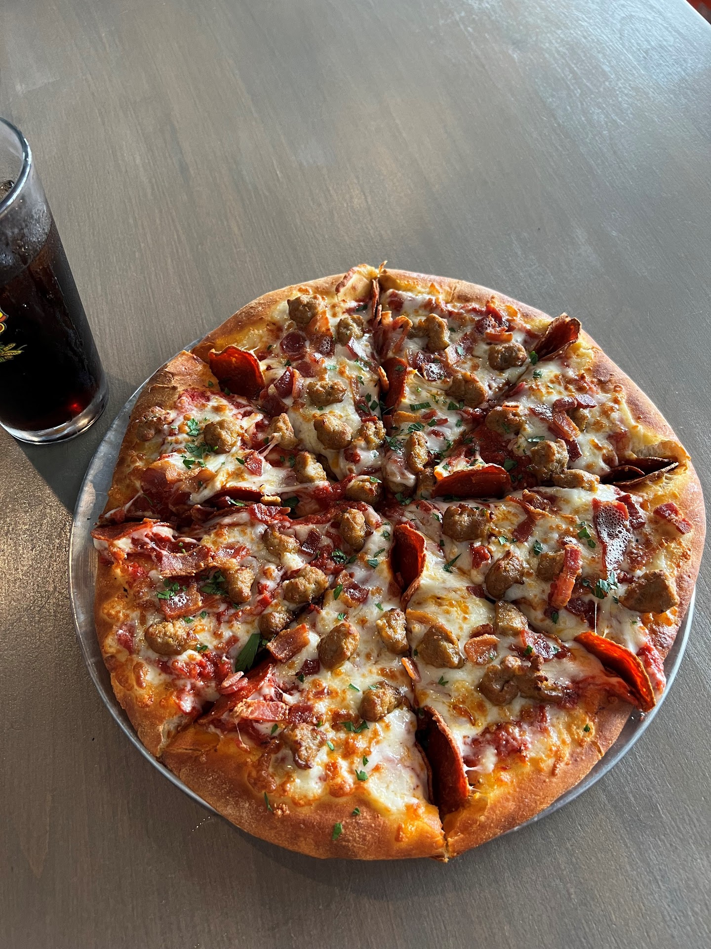 This is not your father's pub. It's much better. The large windows running the entire length of the space afford good views of the downtown skyline, a great place to sit and relax as time goes by. Service is quick and friendly, although I arrived just as the pub was opening. I enjoyed a martini, a beer, and an all meat pizza, and after a 30% tip, paid about $36.