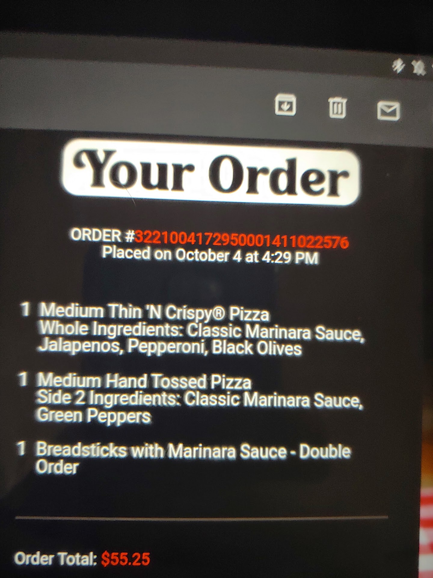 Oh! And my order wasn't even complete. They left out the marinara sauce...